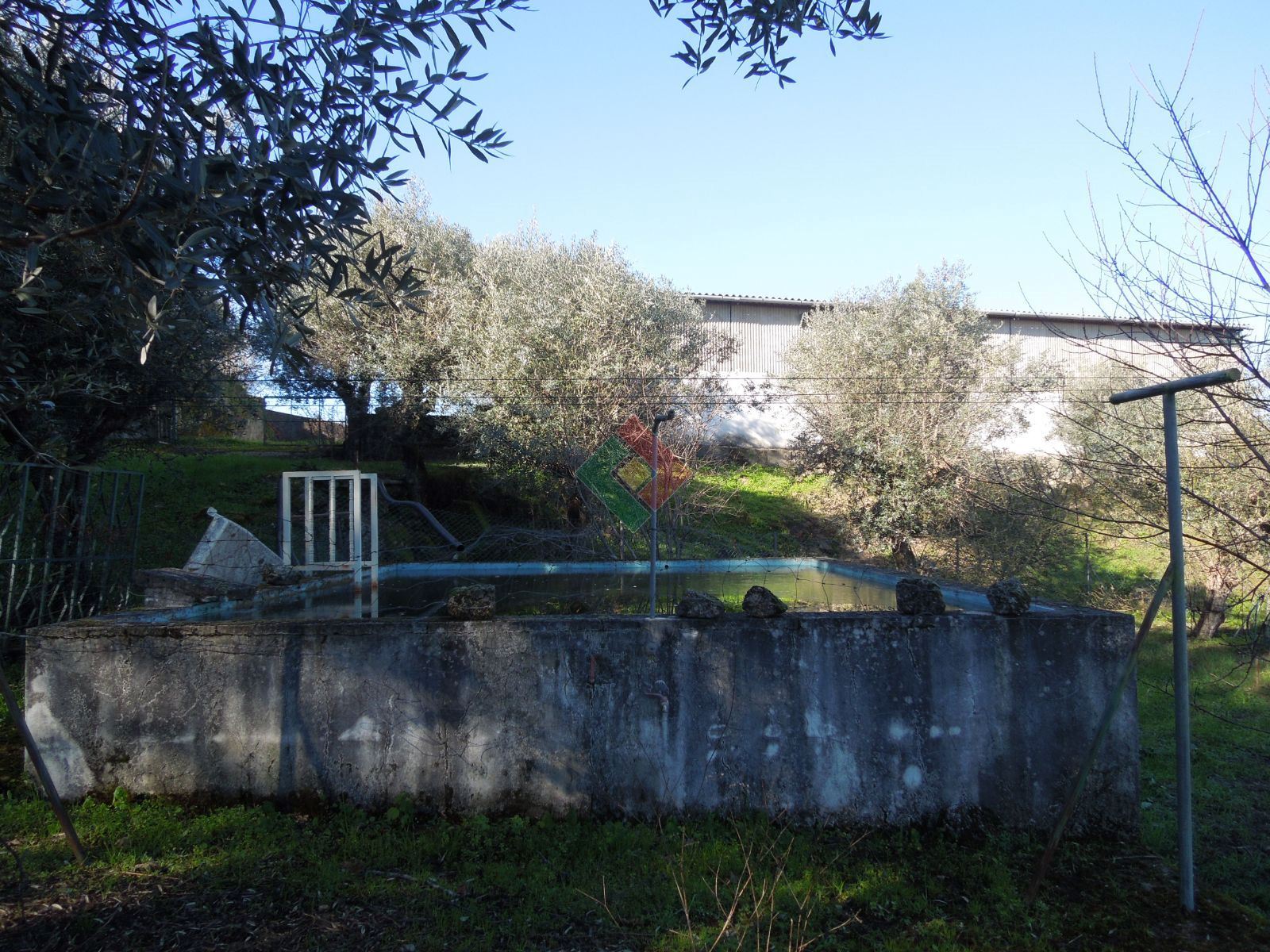Contém um prédio urbano de 200m2 destinado a atividade industrial. O terreno tem uma área de 7250m2 com olival, castanheiros, sobreiros, onde se encontra um furo.