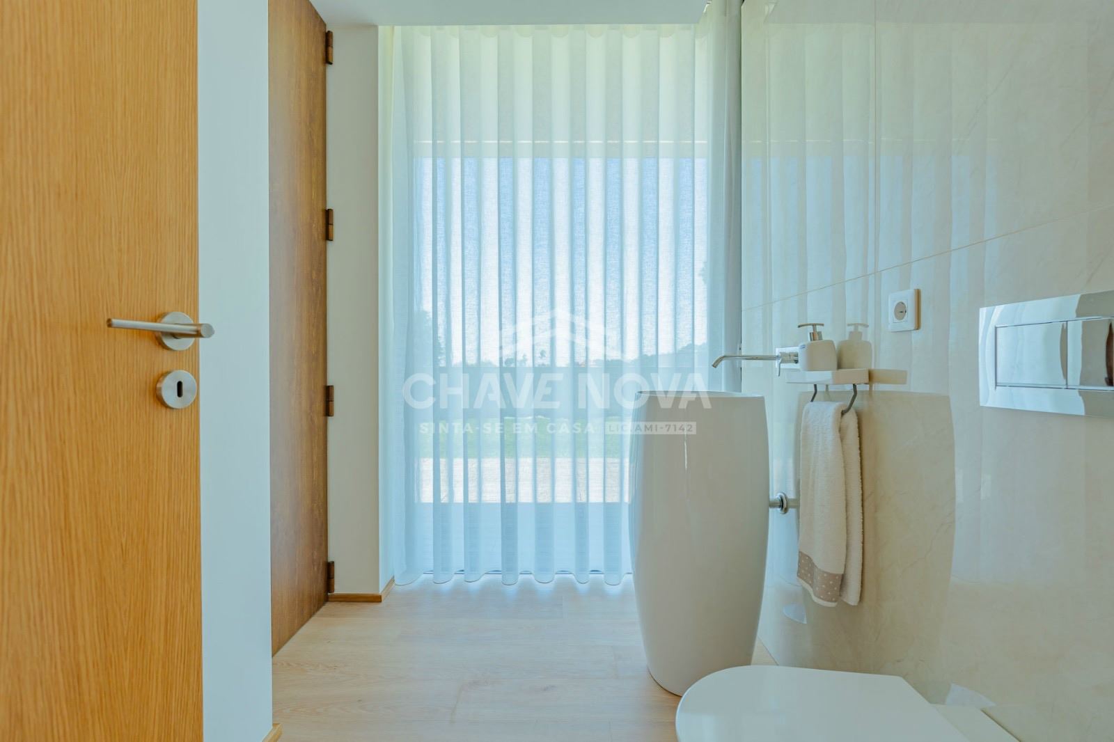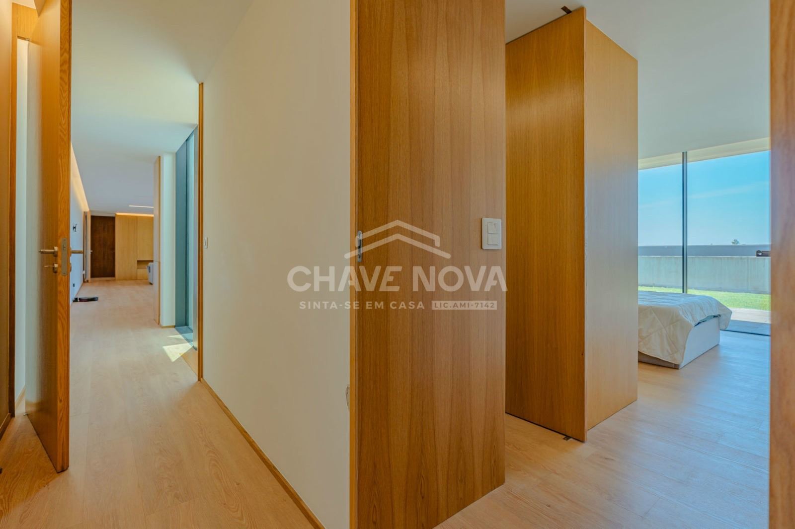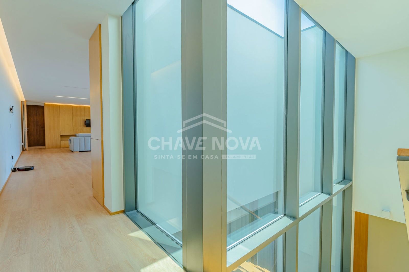 Esta casa combina conforto, funcionalidade e um design moderno, com acabamentos de qualidade. No exterior, a fachada é revestida em capoto pintado, com janelas de alumínio lacado e vidro duplo para isolamento térmico e acústico. A porta de entrada é em madeira com fechadura de segurança, e os portões são automáticos. Há ainda uma área ajardinada com relva semeada.No interior, as paredes são estanhadas e os pavimentos variam entre cerâmica ou madeira flutuante, consoante as divisões. A cozinha é equipada com móveis modernos, eletrodomésticos TEKA, e bancada em silestone. As casas de banho possuem louças Valadares e torneiras IMEX. A casa tem tetos em pladur com focos LED, fogão com recuperador de calor e escadas com degraus em madeira. Está ainda preparada para ar condicionado ou aquecimento central e aspiração central, além de ter um sistema de alarme instalado.