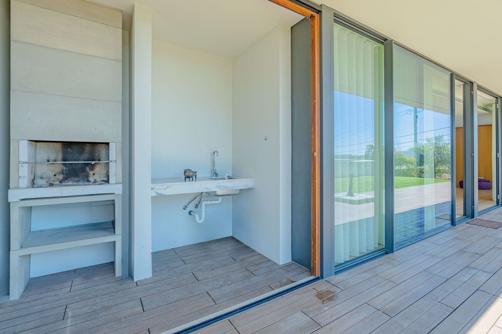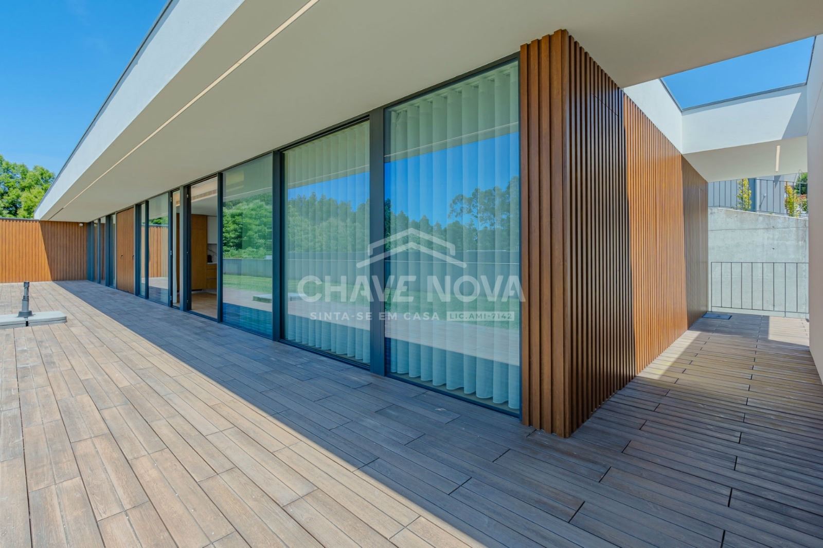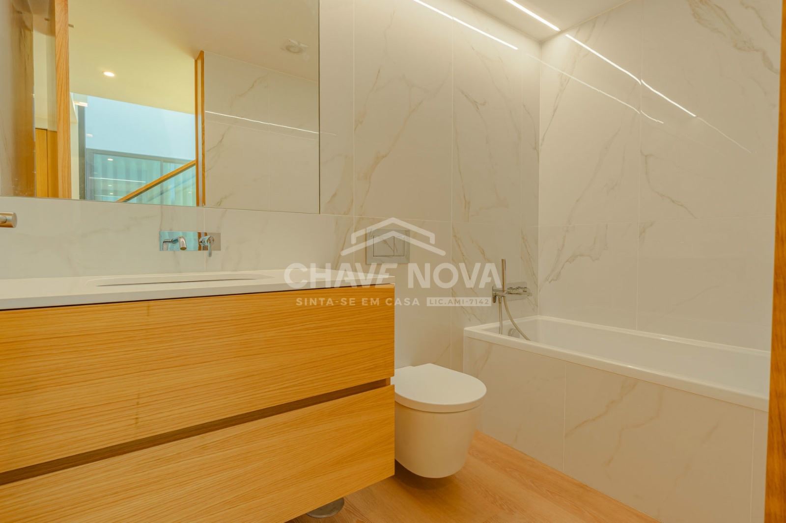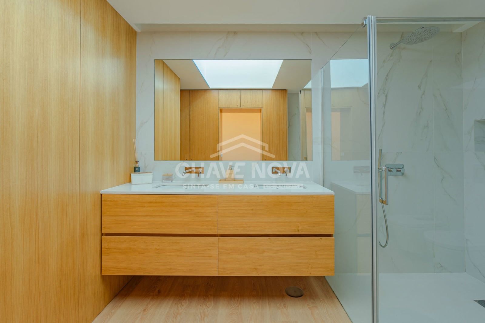 Esta casa combina conforto, funcionalidade e um design moderno, com acabamentos de qualidade. No exterior, a fachada é revestida em capoto pintado, com janelas de alumínio lacado e vidro duplo para isolamento térmico e acústico. A porta de entrada é em madeira com fechadura de segurança, e os portões são automáticos. Há ainda uma área ajardinada com relva semeada.No interior, as paredes são estanhadas e os pavimentos variam entre cerâmica ou madeira flutuante, consoante as divisões. A cozinha é equipada com móveis modernos, eletrodomésticos TEKA, e bancada em silestone. As casas de banho possuem louças Valadares e torneiras IMEX. A casa tem tetos em pladur com focos LED, fogão com recuperador de calor e escadas com degraus em madeira. Está ainda preparada para ar condicionado ou aquecimento central e aspiração central, além de ter um sistema de alarme instalado.