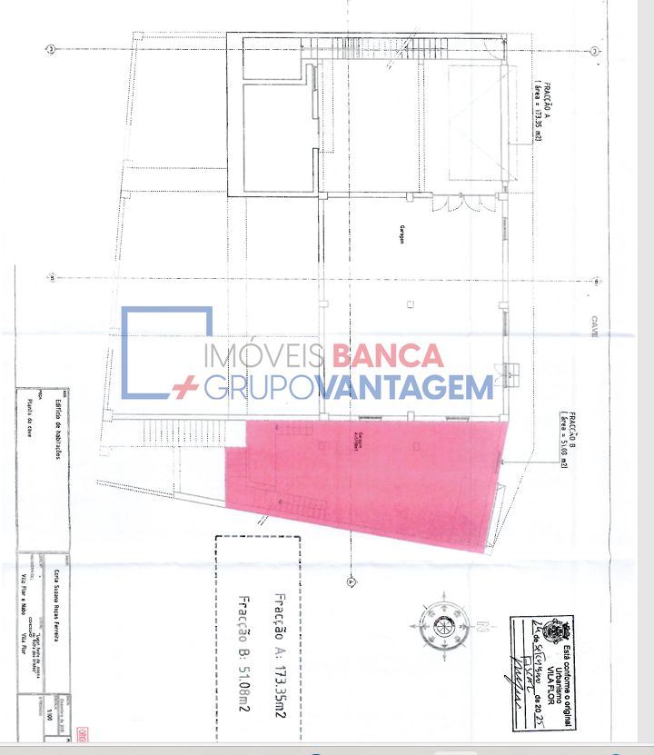APARTAMENTO T3 - VILA FLOR António Rodrigues [email protected] Descrição : Apartamento T3, localizado em Vila Flor, no distrito de Bragança, inserido numa zona consolidada e predominantemente residencial. Beneficia de bons acessos rodoviários, nomeadamente ao IC5, e encontra-se próximo de comércio, serviços e transportes públicos. O imóvel destina-se a habitação e está integrado num prédio urbano em regime de propriedade horizontal, composto por quatro pisos: cave destinada a garagem e três pisos para habitação. A fração, identificada pela letra “B”, situa-se ao nível do rés-do-chão e inclui garagem privativa na cave, varanda e um terraço com anexo equipado com cozinha regional e churrasqueira, proporcionando um espaço exterior funcional e de lazer. Composição da Fração (T3 – Rés-do-chão) • Hall de entrada • Cozinha • Sala • Saleta • Três quartos • Dois quartos de banho • Arrumos • Varanda • Alpendre • Terraço com anexo (cozinha regional + churrasqueira) Área total da habitação: 208,01 m² Garagem privativa na cave (nascente): 51,08 m² Outras Características • Distribuição funcional e equilibrada • Zona residencial tranquila • Bons acessos e proximidade a serviços essenciais Nota Importante !! As propostas deverão ser apresentadas até 09 de dezembro de 2025. Findo este período, o proprietário procederá à venda à oferta que considere mais vantajosa. Só serão consideradas propostas acompanhadas de viabilidade de financiamento, exceto nos casos de aquisição sem recurso a crédito. A RE/MAX + Grupo Vantagem existem para realizar os seus sonhos quer na compra como na venda dos seus imóveis.