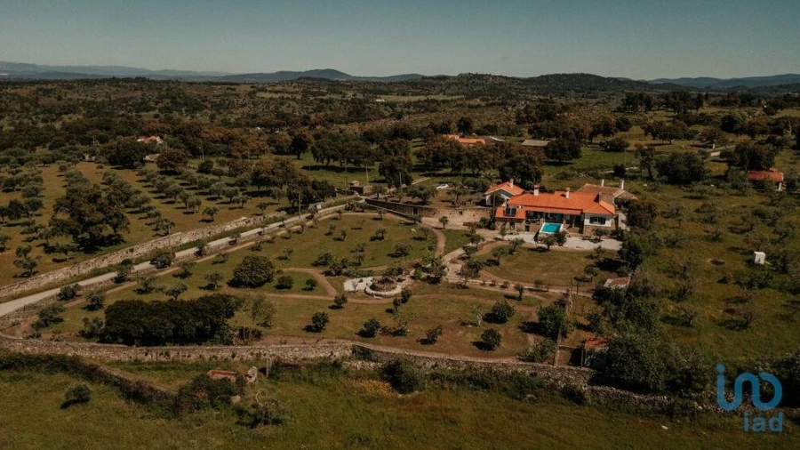 Situada numa colina com vista para uma das doze aldeias históricas de Portugal, do século XII, esta propriedade única, construída aproximadamente há 150 anos, situa-se no centro de Portugal, mesmo junto à fronteira espanhola. Foi numa região tranquila e de natureza preservada, que uma antiga fazenda de pedra se tornou numa propriedade de luxo, com o objetivo de proporcionar um ninho para retiros aos seus proprietários e hóspedes. A sua renovação foi concluída em 2023, e o seu design interior foi inspirado por uma filosofia japonesa, a Wabi-Sabi, que visa 'alcançar a perfeição através da imperfeição'. Resultou num lar onde prevalecem a harmonia, a calma e a beleza autêntica. Cada pormenor da estrutura, do mobiliário, da decoração ou da cor, e mesmo da sua ausência, foi cuidadosamente concebido num estilo requintado, a fim de lhe proporcionar conforto e silêncio, dentro e fora. A propriedade está implantada num terreno ligeiramente inclinado com mais de 5 hectares, onde se pode passear entre centenas de sobreiros e oliveiras autóctones, ou mesmo trepar às rochas de granito que pontilham o terreno de pastagem, enquanto se respira um ar puro e se admira uma vista impressionante sobre dezenas de quilómetros de serras circundantes. O edifício principal de dois andares, com cerca de 290 m2, está orientado para o pôr do sol. Do lado esquerdo, está ligado a uma casa térrea com cerca de 140 m2; e à sua frente, encontra-se uma casa separada de dois andares, com cerca de 125 m2. Descendo um caminho curto, chega-se à piscina de água salgada de cerca de 100 m2. Todas as fachadas exteriores e interiores, bem como a envolvente imediata dos edifícios e da piscina, são em pedra ou madeira, estando perfeitamente integradas na paisagem. Entre a piscina e o edifício principal, um antigo poço foi convertido num agradável espaço de relaxamento exterior. A propriedade é totalmente murada e entramos por um portão automático que conduz a uma zona de estacionamento com 10 lugares. A propriedade é composta por 10 suites espaçosas, cada uma com um acesso independente, uma casa de banho privativa (sendo que 6 delas com banheira e chuveiro), uma pequena sala de estar e um terraço ou varanda privativa. Existem 4 suites em cada piso do lado direito do edifício principal e outras 2 no segundo piso da casa separada. Todas as suites estão equipadas com ar condicionado reversível. Na casa térrea, na continuação do edifício principal, acedemos às áreas comuns, com aquecimento no chão, que se destacam pelos seus tetos altos : um generoso salão com cerca de 60 m2, com uma salamandra a lenha, divide-se por alguns degraus em três níveis / áreas, às quais também se pode aceder diretamente através de duas janelas francesas de entrada. De um lado, em direção às suites, encontra-se a lavandaria, uma casa de banho social e a escada de acesso ao primeiro andar. Do outro lado, encontra-se a sala de pequenos-almoços / jantares, um bar com o seu equipamento profissional de alta qualidade e outras duas janelas francesas de entrada. A partir daí, através de um corredor também envidraçado, acede-se à casa separada onde se encontram, no rés do chão : um espaço aberto com uma escada para o primeiro andar, uma cozinha e uma sala de estar. Esta tem duas portas de entrada e um acesso a um terraço privado. No primeiro andar, estão 2 suites, que também podem ser acedidas diretamente do exterior. Todas as divisões beneficiam de muita luz natural, proveniente de grandes janelas / portas de vidro em ambos os lados dos edifícios, levando também a uma sensação de ausência de limites entre o interior e o exterior. O aquecimento / arrefecimento no chão, as luzes artificiais indiretas, os materiais e os tons naturais suavizam o ambiente e realçam a sua beleza. Existem ligações a internet / TV por fibra em todas as divisões. A propriedade está ligada à rede principal de água e eletricidade. A fossa séptica é biológica. Existe uma bomba de calor e um deposito de 1500 litros para água quente e aquecimento no chão. 20 painéis solares complementam o fornecimento de eletricidade. Existem ainda dois poços na propriedade, sendo um deles utilizado para rega e a piscina. Esta propriedade foi cuidadosamente renovada respeitando a natureza e a tradição, oferecendo intimidade para relaxar e encontrar harmonia. Através de uma estrada de calçada de 500 metros, chega-se rapidamente à aldeia mais próxima. A aldeia turística de Monsanto fica a 2 km e a grande cidade de Castelo Branco a 50 minutos de carro. A fronteira espanhola fica a 25 km de distância.