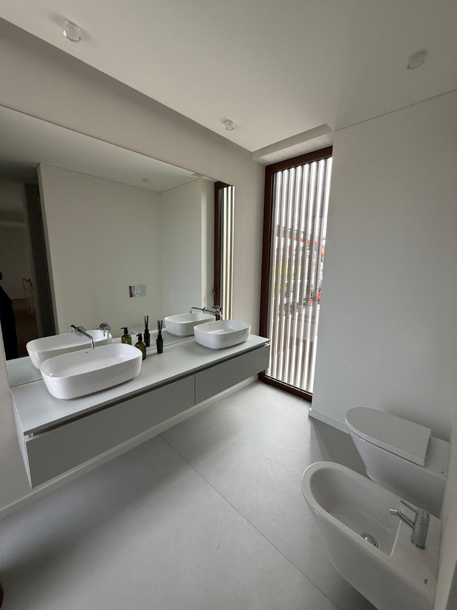Apresentamos esta fantástica Moradia contemporânea V4 pensada para quem valoriza design, eficiência e conforto, com vistas abertas sobre a cidade de Felgueiras e espaços exteriores generosos. Moradias contemporâneas pensadas para quem valoriza design, eficiência e conforto, com vistas abertas sobre a cidade de Felgueiras e espaços exteriores generosos. Localizadas em Felgueiras, junto ao centro da cidade, com acesso em menos de 5 minutos à autoestrada Porto/Guimarães, numa zona muito soalheira e tranquila. Principais características • Sistema de AC (ar condicionado) para conforto térmico eficiente em todas as estações. • Sistema de alarme para uma segurança eficiente. • Cozinha com solução de ilha com bancada e laterais em quartzo, desenho contemporâneo e funcional. Totalmente equipada com eletrodomésticos Siemens (conjunto integrado para máxima fiabilidade e estética). • Lavandaria generosa, com amplas portas de correr para ventilação e acesso ao exterior Eficiência energética e AQS Sistema com Painéis solares para apoio energético e acumulador para aquecimento de águas sanitárias (AQS), reduzindo consumos e emissões. Interior - 1º Piso Roupeiros embutidos em todos os espaços: quartos e vestíbulo, otimizando organização e limpeza visual. Quartos e varandas Todos os quartos com varanda de boa dimensão, revestidas a deck exterior e com floreiras, criando zonas privadas de estar ao ar livre. Suíte principal com closet e luz natural direta, garantindo conforto e exclusividade. Interior - Rés-do-chão Sala com pavimento flutuante SWISS KRONO, é ampla e luminosa, tem ligação ao exterior através de um generoso deck composite. Carpintaria em madeira de Carvalho, que traz elegância, durabilidade e conforto acústico. Instalações sanitárias Casas de banho equipadas com louça sanitária ROCA. Cerâmica minimalista, de grande requinte. Torneiras misturadoras Bruma, sinónimo de qualidade e design. Vãos e caixilharia Caixilharia com vidro duplo e corte térmico de perfil minimalista e vãos de grande dimensão, potenciando a luz natural e as vistas para Felgueiras. Espaços exteriores Jardim à frente e nas traseiras, com relvado que valoriza a vivência ao ar livre Floreiras nas varandas, reforçando a ligação à natureza e o caráter “Jardim” do conjunto. Iluminação em todo o espaço exterior Parqueamento automóvel sob pérgula em madeira, para 2 a 3 viaturas com instalação para ponto de carregamento elétrico Exterior em cubinho de granito amarelo, resistente e de elevada qualidade estética.