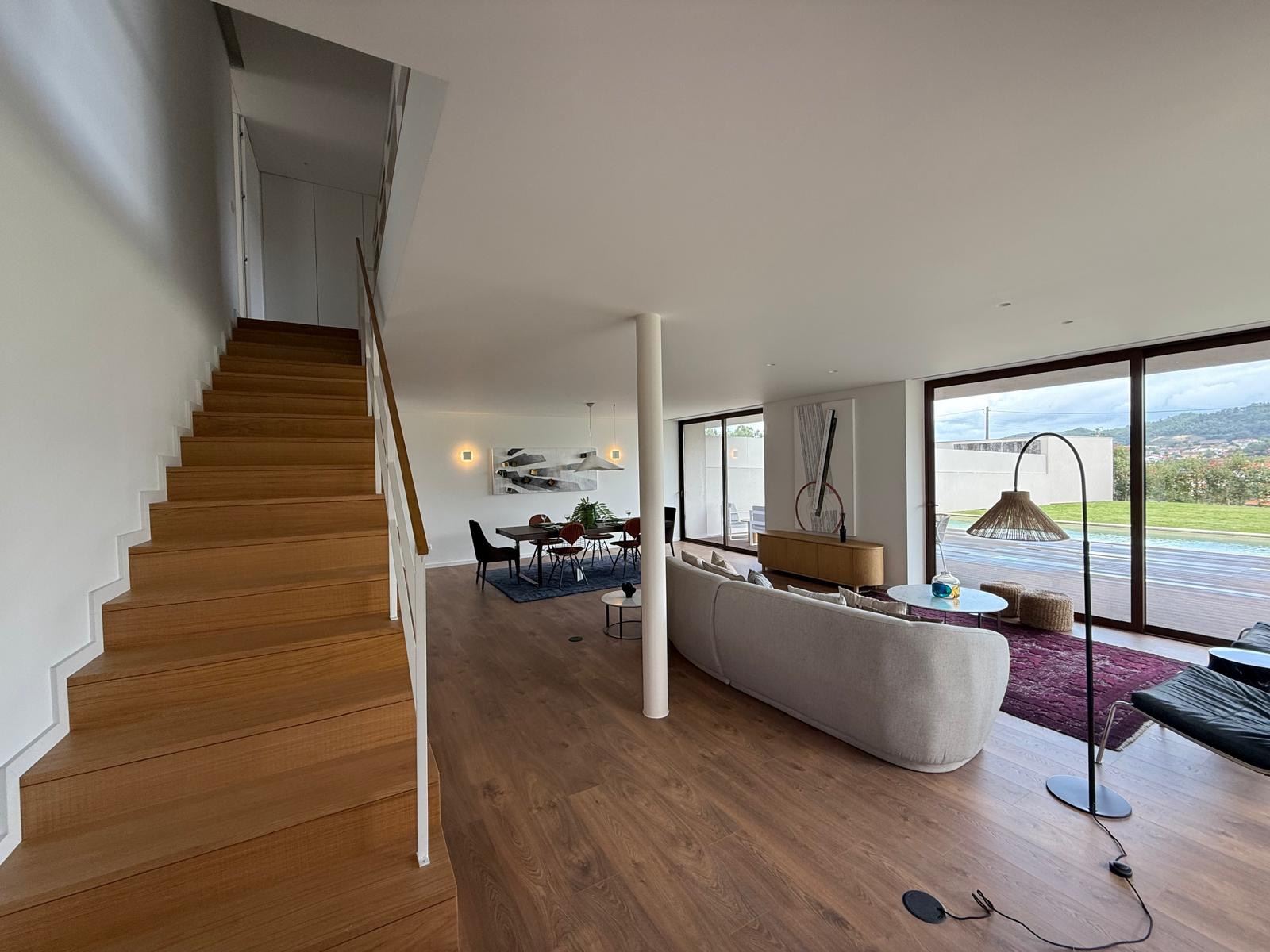 Apresentamos esta fantástica Moradia contemporânea V3 com Piscina pensada para quem valoriza design, eficiência e conforto, com vistas abertas sobre a cidade de Felgueiras e espaços exteriores generosos. Moradias contemporâneas pensadas para quem valoriza design, eficiência e conforto, com vistas abertas sobre a cidade de Felgueiras e espaços exteriores generosos. Localizadas em Felgueiras, junto ao centro da cidade, com acesso em menos de 5 minutos à autoestrada Porto/Guimarães, numa zona muito soalheira e tranquila. Principais características • Sistema de AC (ar condicionado) para conforto térmico eficiente em todas as estações. • Sistema de alarme para uma segurança eficiente. • Cozinha com solução de ilha com bancada e laterais em quartzo, desenho contemporâneo e funcional. Totalmente equipada com eletrodomésticos Siemens (conjunto integrado para máxima fiabilidade e estética). • Lavandaria generosa, com amplas portas de correr para ventilação e acesso ao exterior Eficiência energética e AQS Sistema com Painéis solares para apoio energético e acumulador para aquecimento de águas sanitárias (AQS), reduzindo consumos e emissões. Interior - 1º Piso Roupeiros embutidos em todos os espaços: quartos e vestíbulo, otimizando organização e limpeza visual. Quartos e varandas Todos os quartos com varanda de boa dimensão, revestidas a deck exterior e com floreiras, criando zonas privadas de estar ao ar livre. Suíte principal com closet e luz natural direta, garantindo conforto e exclusividade. Interior - Rés-do-chão Sala com pavimento flutuante SWISS KRONO, é ampla e luminosa, tem ligação ao exterior através de um generoso deck composite. Carpintaria em madeira de Carvalho, que traz elegância, durabilidade e conforto acústico. Instalações sanitárias Casas de banho equipadas com louça sanitária ROCA. Cerâmica minimalista, de grande requinte. Torneiras misturadoras Bruma, sinónimo de qualidade e design. Vãos e caixilharia Caixilharia com vidro duplo e corte térmico de perfil minimalista e vãos de grande dimensão, potenciando a luz natural e as vistas para Felgueiras. Espaços exteriores Jardim à frente e nas traseiras, com relvado que valoriza a vivência ao ar livre Floreiras nas varandas, reforçando a ligação à natureza e o caráter “Jardim” do conjunto. Iluminação em todo o espaço exterior Parqueamento automóvel sob pérgula em madeira, para 2 a 3 viaturas com instalação para ponto de carregamento elétrico Exterior em cubinho de granito amarelo, resistente e de elevada qualidade estética.