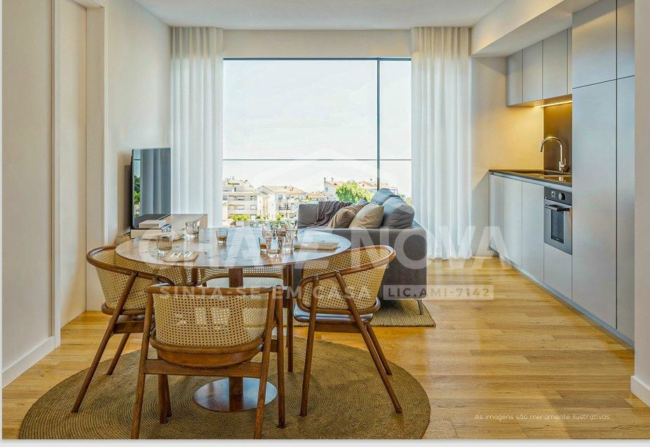 Apartamento T1 | Próximo ao Hospital de S. João - Agra Campus III Apartamento T1 novo, com 54,6 m² de área coberta e lugar de garagem, inserido em empreendimento moderno que inclui apartamentos T0, T1, T1+1 e T2. Localizado junto ao Hospital de São João, ao Pólo Universitário da Asprela e ao Parque Central da Asprela, rodeado de escolas, transportes, comércio moderno e tradicional, garantindo conveniência total. Conclusão prevista: Julho 2026 Destaques do Empreendimento: Certificação energética Classe A Orientação solar poente, pensada para conforto térmico e luminosidade Elevadores seletivos, iluminação LED inteligente e vídeo-porteiro IP Lavandaria self-service exclusiva para moradores Compartimento de resíduos sólidos privado Sala de condomínio para uso dos moradores Rede de gás canalizado Isolamento térmico e acústico de alta qualidade Acabamentos do Apartamento: Hall, Sala e Quartos Pavimento flutuante em freixo ou similar Armários e móveis em MDF lacado branco com tampos em compacto branco Paredes e tetos com acabamento liso pintado, tetos falsos com isolamento acústico Iluminação embutida em LED Cozinha: Mobiliário em MDF lacado branco, tampos em compacto branco Placa e exaustor incluídos Lava-loiças inox com torneira monocomando tubular Revestimento entre móveis em vidro laminado ultraclaro lacado Iluminação LED por sanca sob móveis superiores Casas de Banho: Loiças suspensas Sanitana POP Móveis em MDF lacado branco com lavatórios semi-embutidos Base de duche grande formato, resguardo e torneira de alta eficiência hídrica Pavimentos e paredes revestidos a cerâmica retificada Tetos falsos hidrófugos com isolamento acústico ️ Segurança e Conforto: Porta de entrada blindada com fechadura de segurança Estores/persianas motorizadas e isoladas termicamente Aquecimento central com convetores elétricos na sala e quarto Bomba de calor para águas sanitárias Sistema de vídeoporteiro com monitor no hall de entrada Um apartamento moderno, com design funcional, conforto e excelente localização, ideal para habitação própria ou investimento. Para além deste imóvel, dispomos de mais imóveis que de certeza encaixam naquilo que pretende. Mais informações sobre este ou outro imóvel e marcações de visita, contacte-nos: Chave Nova Porto Boavista. Telef.: 221176236.