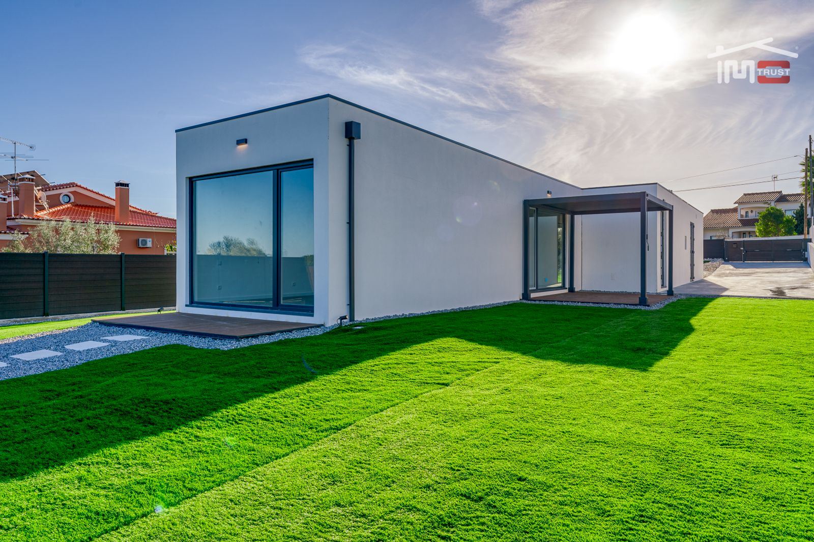 A moradia já se encontra em fase de acabamentos, onde ainda pode escolher alguns dos acabamentos. Excelente qualidade de construção e com ótimos acabamentos No piso do rés-de-chão encontra: 1 Garagem com portão seccionado para dois carros, com acesso direto ao interior da moradia 1 Quarto suíte com roupeiro embutido Cozinha em open space com a sala e com vista para o jardim 1 Casa de banho com lava mãos, bidé e sanita 1 Despensa No piso superior: 1 Quarto com roupeiro embutido 1 Quarto com roupeiro embutido e com varanda 1 Quarto suíte, com roupeiro embutido e com varanda O chão dos quartos será em flutuante Terraço isolado e com corte térmico de 12 cm Telhado em placa com isolação de 6 cm, coberto com chapa sandwich de 6 cm Fachada com isolação de 8 cm Bomba de calor Será aplicado o ar condicionado em toda a moradia Os arranjos exteriores do jardim serão realizados O lote está todo murado, frente com portão elétrico, iluminação embutida e pontos de água As imagens 3D são meramente ilustrativas Para mais informações contacte nos.