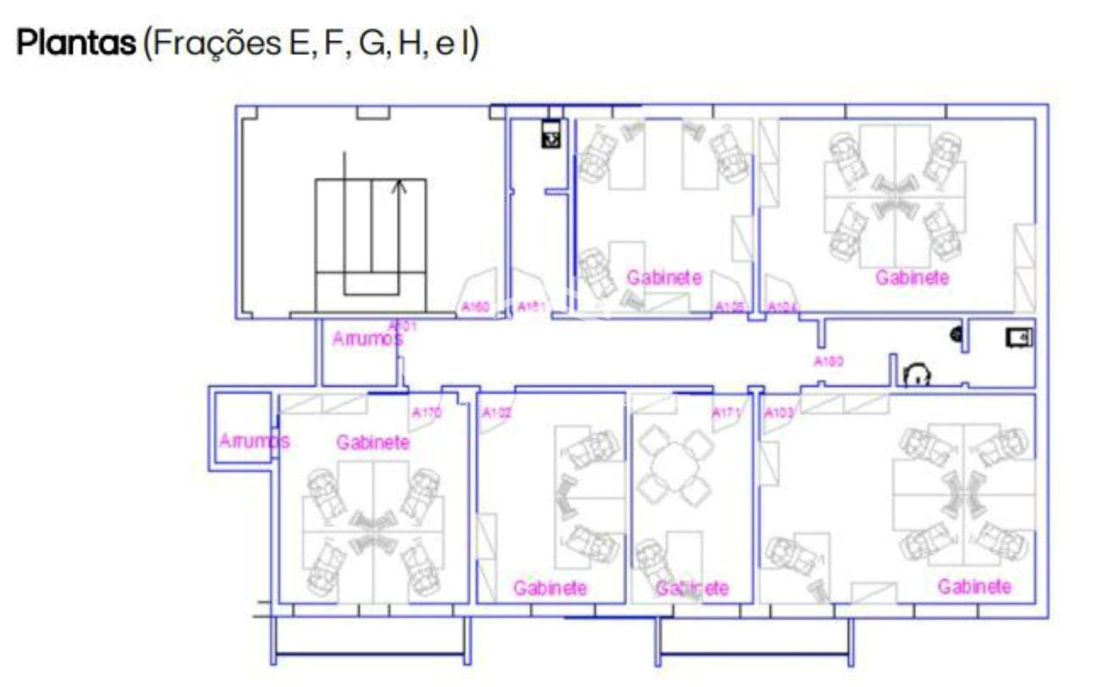 O imóvel está inserido num edifício de rés-do-chão, 1.º e 2.º andares, com afetação a comércio e serviços. Os imóveis em venda são cinco fracções autónomas, todas localizadas no 1.º andar e destinadas a comércio. Os imóveis encontram-se para venda conjunta. As frações estão situadas numa zona urbana consolidada, próxima do centro da cidade. Trata-se de uma localização central, com proximidade à Câmara Municipal, ao Tribunal e a estabelecimentos de ensino, beneficiando de boa acessibilidade rodoviária e presença de transporte público nas imediações. Fração E, 23m² Fração F, 31m² Fração G, 36m² Fração H, 36m² Fração I, 25m²