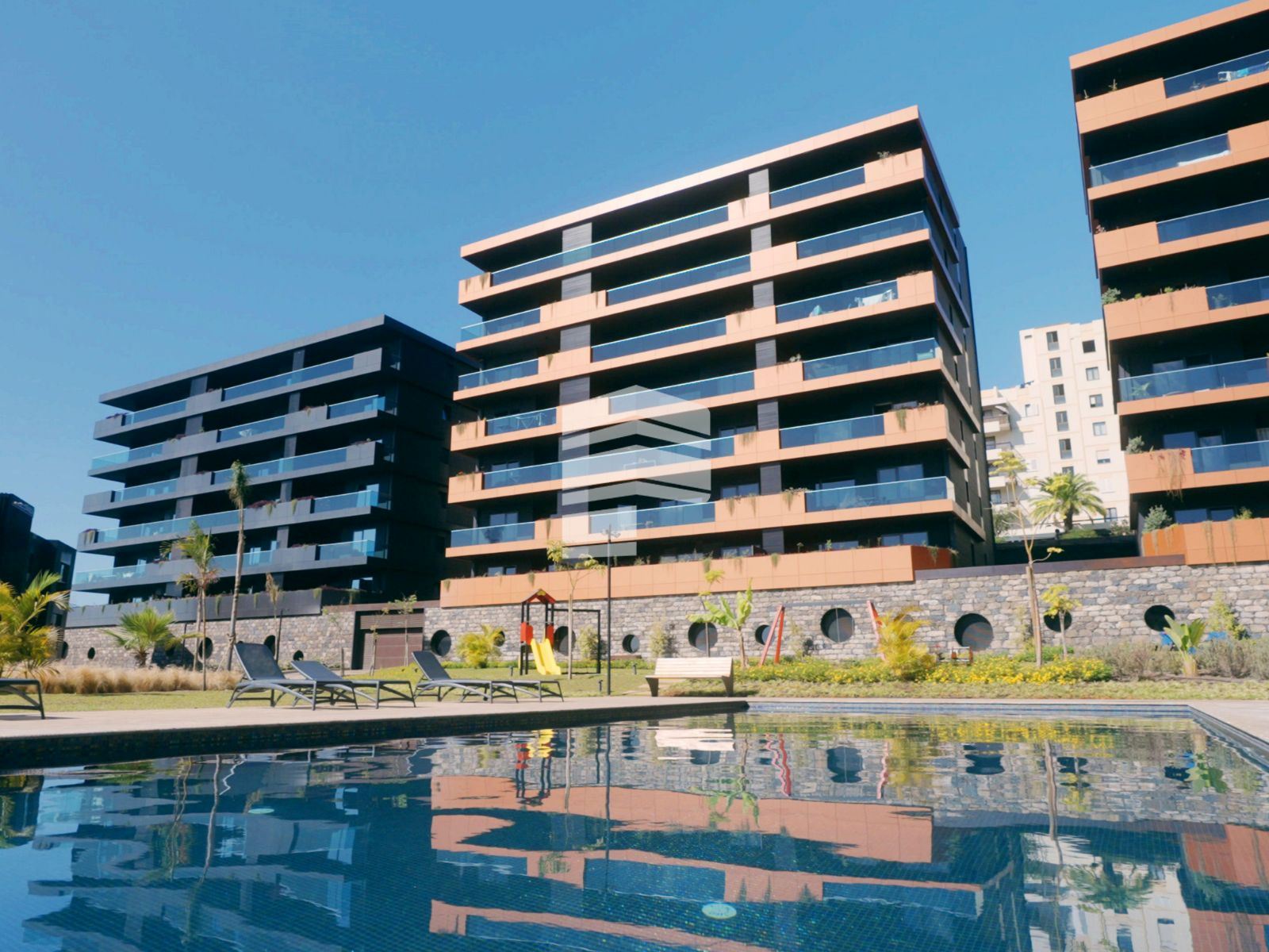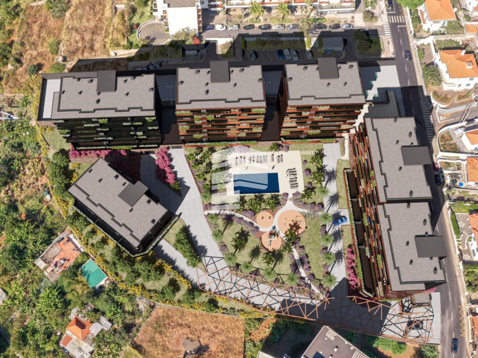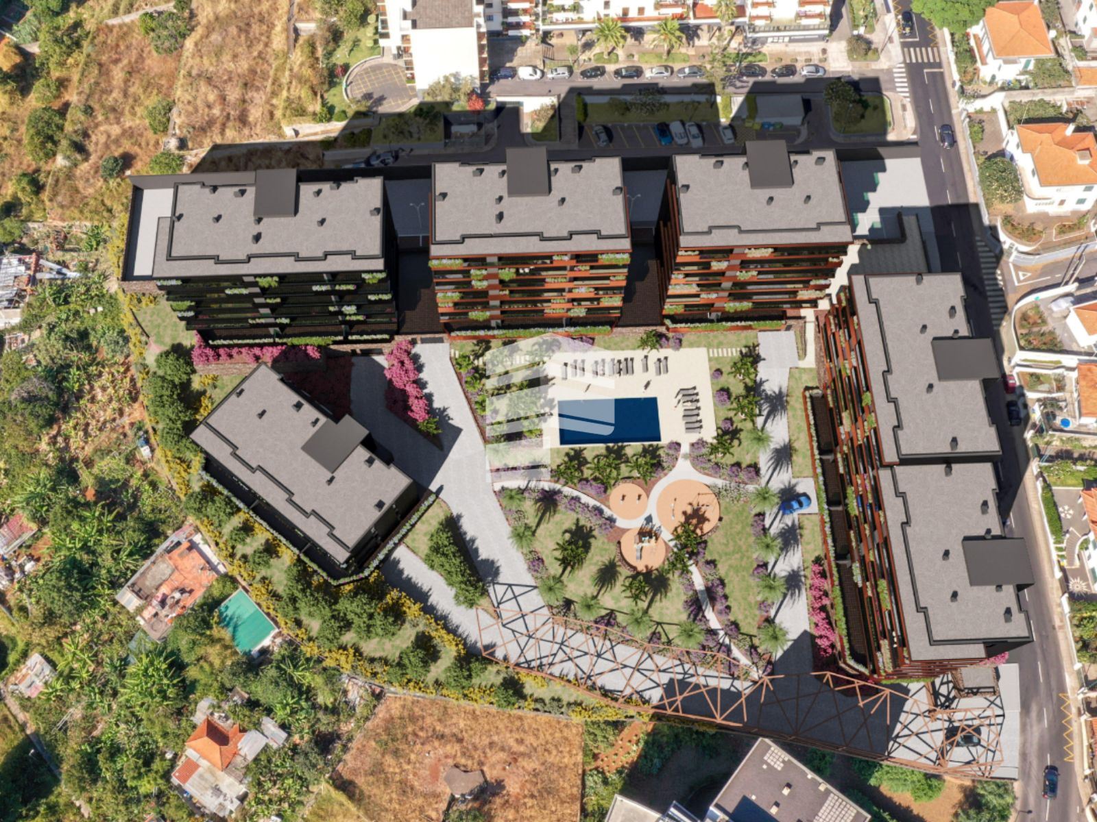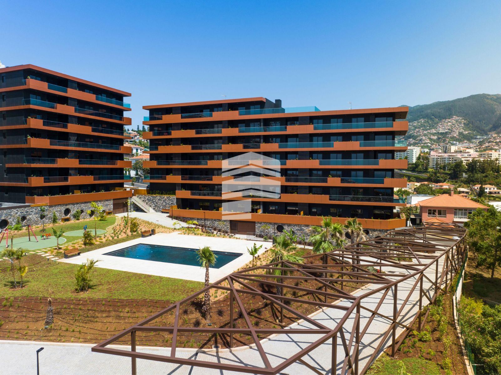 O empreendimento VARINO 07, é o segundo projeto a nascer no cada vez mais reconhecido 'Dubai' Madeira, está localizado no extremo Sudoeste do empreendimento, no cruzamento da Estrada Monumental com o Caminho do Amparo. É um projeto que congrega habitação com espaços comerciais inseridos numa frente privilegiada de rua, em coexistência com a Estrada Monumental, que permitirá uma interação entre os residentes e os turistas, quer em termos de utilização dos espaços comerciais, quer pela dinamização dos espaços verdes e de lazer disponíveis. Com a sua arquitetura inovadora, o edifício é revestido com uma 'pele' de lâminas em metal de cor bronze com ritmos de distribuição distintos ao longo de cada piso, pontuada com varandas envidraçadas e floreiras em contraste com um fundo escuro. O empreendimento de luxo é composto por um ginásio e 61 frações das quais 5 são espaços comerciais e 56 são apartamentos com generosas áreas que variam das tipologias T1 e T4. ACABAMENTOS TETOS Sala Quartos e Hall: - em placas de gesso cartonado (pladur) com acabamento a tinta aquosa de elevada qualidade com acabamento mate do tipo Vinylmatt da Cin ou similar. W.C.s e Cozinhas: - em placas de gesso cartonado (pladur) hidrófugo com acabamento a tinta aquosa de elevada qualidade com acabamento mate do tipo Vinylsilk da Cin ou similar. PAREDES Instalações Sanitárias: - estanhadas e pintadas a tinta aquosa de elevada qualidade com acabamento mate do tipo Vinylsilk da Cin ou equivalente e revestimento em pastilha de vidro ou similar na zona de duche. Cozinhas: - estanhadas e pintadas a tinta aquosa de elevada qualidade com acabamento mate do tipo Vinylsilk da Cin ou equivalente, revestimento em Granito Negro Angola ou similar entre móveis. Quartos, Salas e Halls: - estanhadas com acabamento a tinta aquosa de elevada qualidade com acabamento mate do tipo Vinylmatt da Cin ou similar. PAVIMENTOS Instalações Sanitárias: - revestimento em Granito Negro Angola ou similar. Cozinhas: - revestimento em Granito Negro Angola ou similar. Quartos, Salas e Halls: - soalho em multicamada de Carvalho ou similar. MÓVEIS DE COZINHA - móveis em termolacado ou similar. - eletrodomésticos Siemens ou similar (placa, forno, exaustor, máquina lavar loiça, combinado e microondas), pia c/legumeira, portatalheres e balde p/lixo. INSTALAÇÕES SANITÁRIAS - loiças suspensas do tipo VARINO ou similar. - móvel suspenso em mdf lacado à cor cinzento escuro. - torneiras modelo personalizado VARINO. - rodapé em aço inox polido. CARPINTARIAS - rodapés e portas interiores em madeira, lacados à cor cinzento escuro ou similar. - roupeiros embutidos em todos os quartos lacados à cor cinzento escuro, acabamento interior em top-case (cancun ou similar) e iluminação led com sensor ou similar. FACHADAS - fachada revestida com painel fenólico do tipo 'Trespa', painel compósito de alumínio do tipo 'Alucobond' e perfis em alumínio termolacado ou similar. DIVERSOS - terraços com pavimento revestido a Granito Amarelo ou similar. Varandas com pavimento revestido a Grés Branco com pigmento ou similar. - porta principal de entrada do prédio com código e portão automático de acesso às garagens. - vídeo porteiro a cores. - portas de entrada dos apartamentos blindadas de alta segurança da marca Dierre ou similar. - caixilharia em alumínio tipo Arkial com características térmicas e acústicas, corte térmico e vidro duplo. - materiais e soluções de excelente isolamento térmico e acústico. - estores interiores elétricos, em alumínio termolacado com isolamento em poliuretano de alta densidade nos quartos. - instalação de ar condicionado em salas e quartos. - pré-instalação de aspiração central. - pré-instalação de domótica. - pré-instalação de sistema de som. - certificação energética classe A em todas as frações.