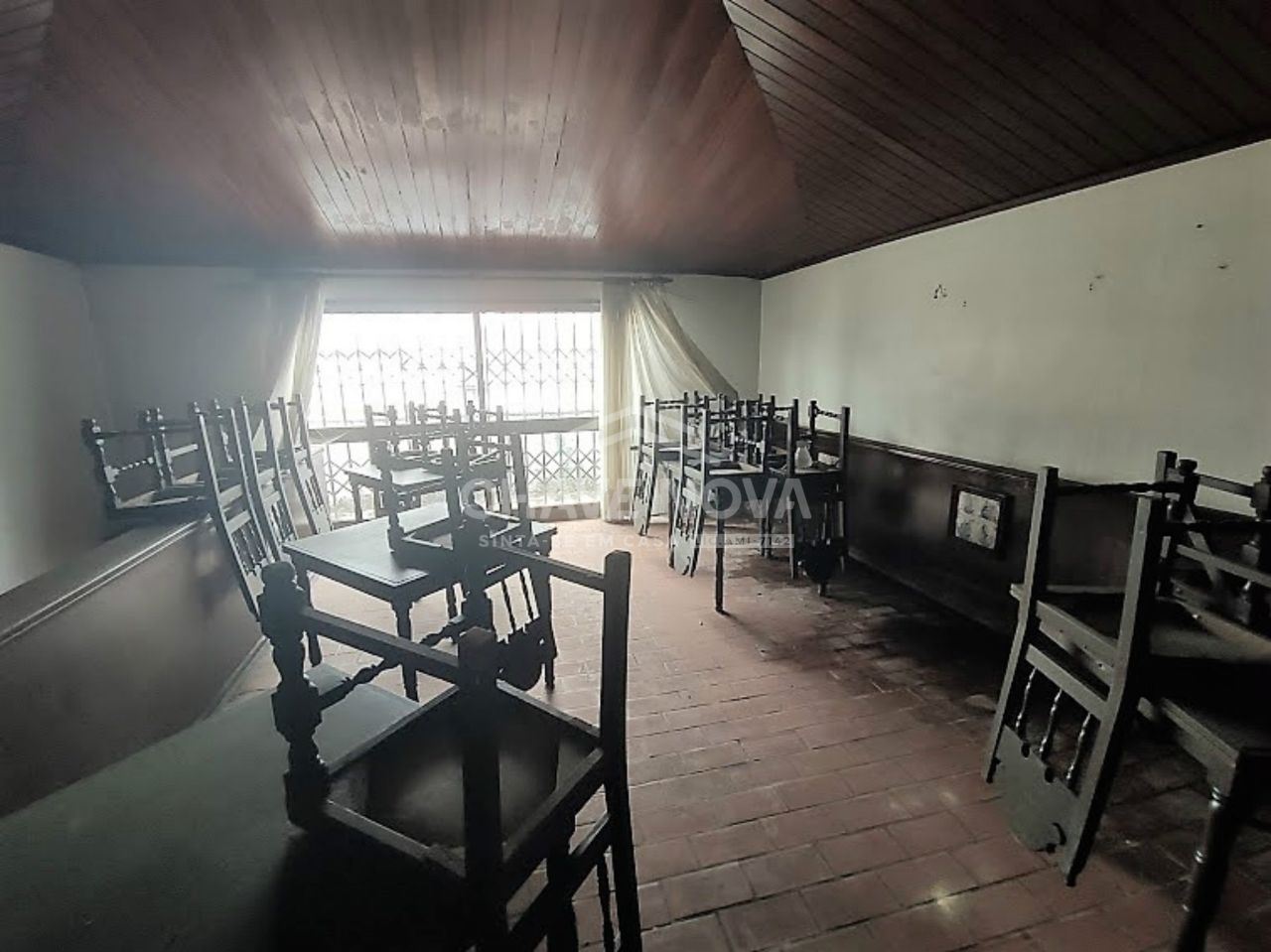 Imagine um antigo armazém de vinhos, com uma área generosa de 690 m², situado no coração de Valadares. A estrutura, com suas paredes de pedra exposta e vigas de madeira robustas, carrega a história de um tempo em que o vinho era armazenado e envelhecido com cuidado. O edifício possui janelas amplas que, embora precisem de renovação, oferecem uma vista encantadora da movimentada rua abaixo e da vida vibrante da cidade.