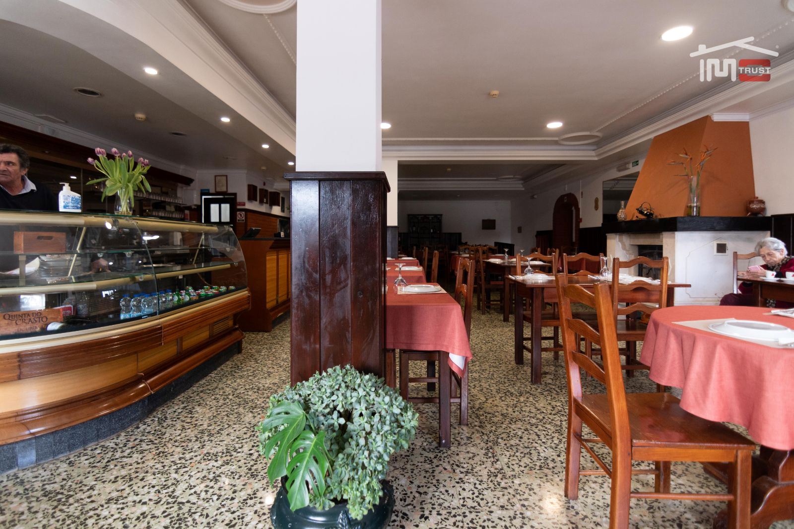 Prédio habitacional composto por um T2 e um T3 e Café / Restaurante no R/Ch todo equipado. Compõe um grande parque de estacionamento.