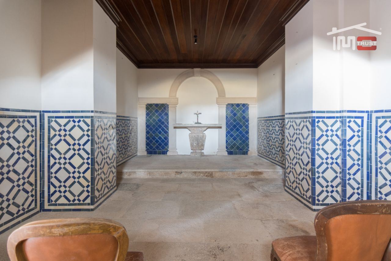 O piso térreo, destinado originalmente a dependências agrícolas, integra um hall com chão em grandes lajes de pedra original, uma sala ladeada por arcos em pedra que levam a várias suites (por concluir) e uma capela já reformulada.