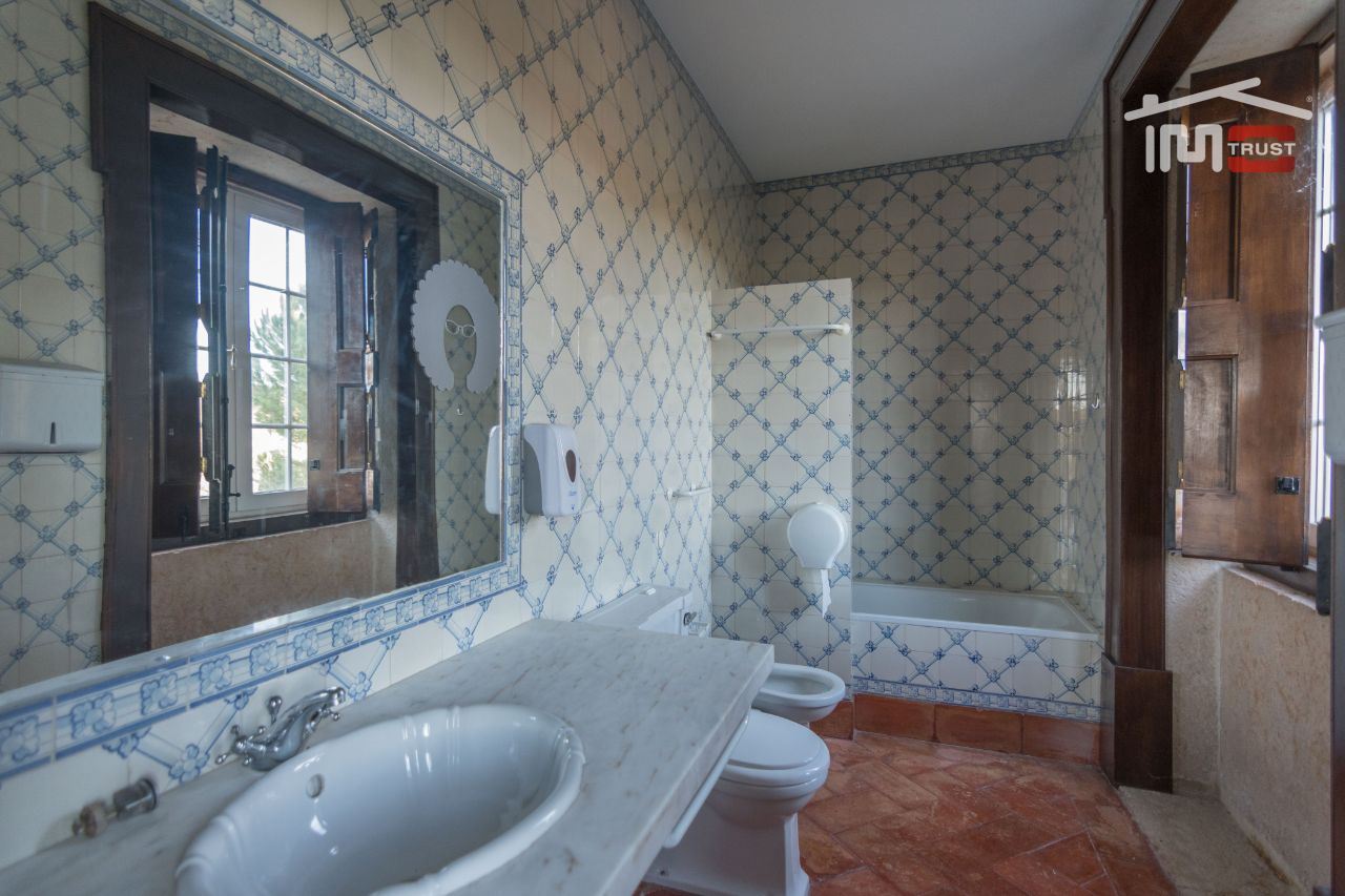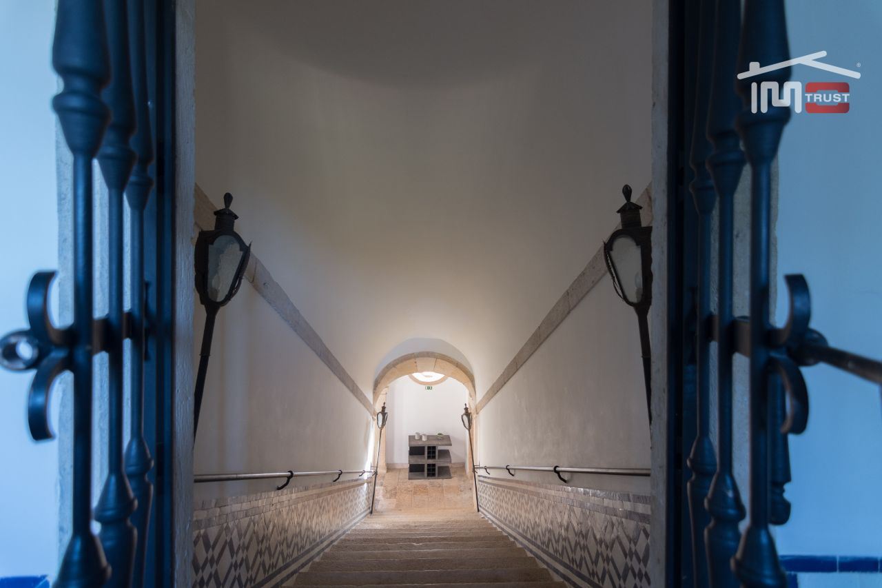 O acesso ao 1º piso é feito através de uma sumptuosa escadaria cujo rodapé é decorado Com azulejos de caixilho azuis e brancos. Neste andar, considerado o andar nobre, dispõem-se as divisões residenciais, com um enorme salão virado para a fachada principal e para o qual se abrem as antigas celas dos freires. Conserva chão de madeira maciça, diversas salas, duas das quais com lareira, tetos com pé direito alto e biblioteca. Destacam-se ainda neste piso, uma sala preenchida com azulejos em “ponta de diamante” da primeira metade do século XVII.
