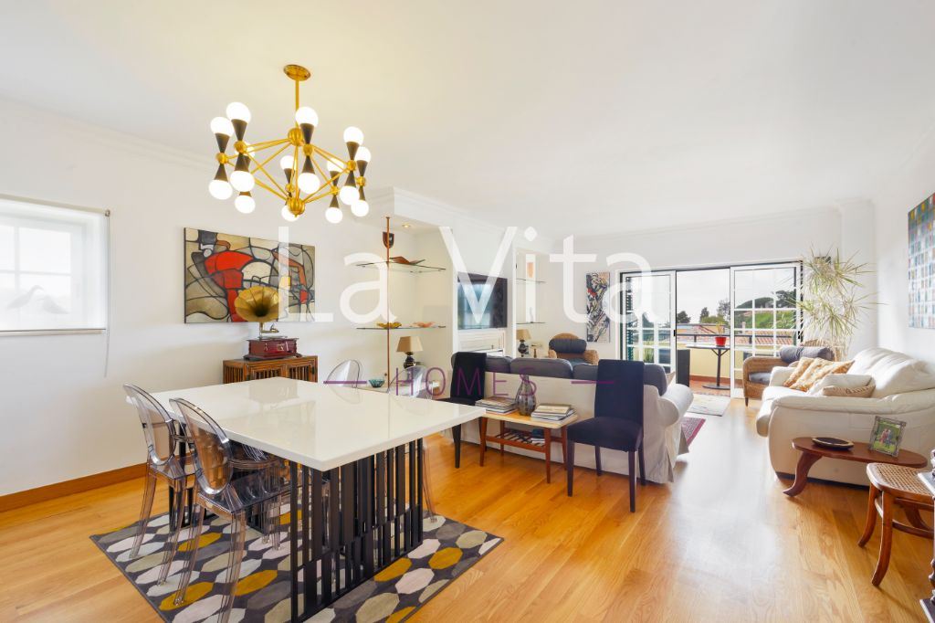 Apartamento T3 em Cascais, totalmente renovado. Inserido num 4º andar com elevador e está a 10 minutos do Centro de Cascais. Sala com cozi...