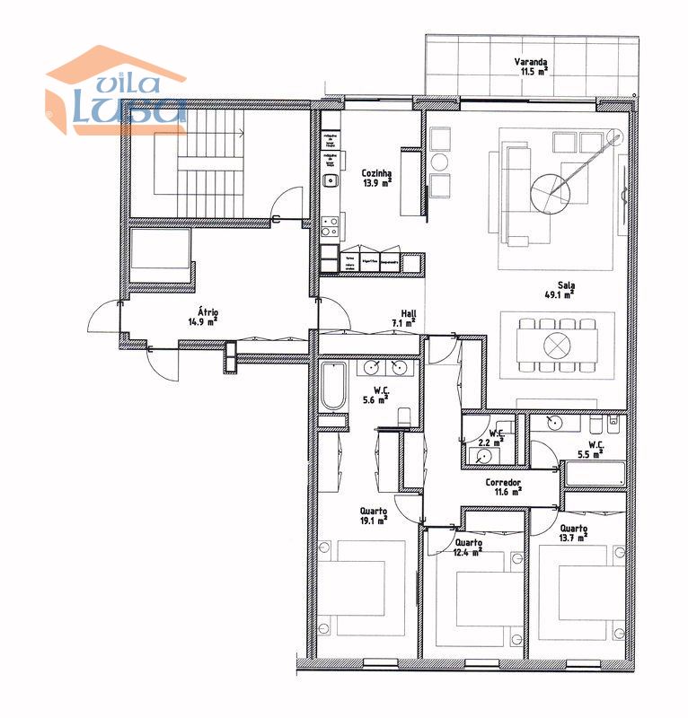 Apartamento T4 de luxo inserido em condomínio fechado com porteiro/segurança 24 h, piscina aquecida, sauna, banho turco, jacuzzi e ginásio.