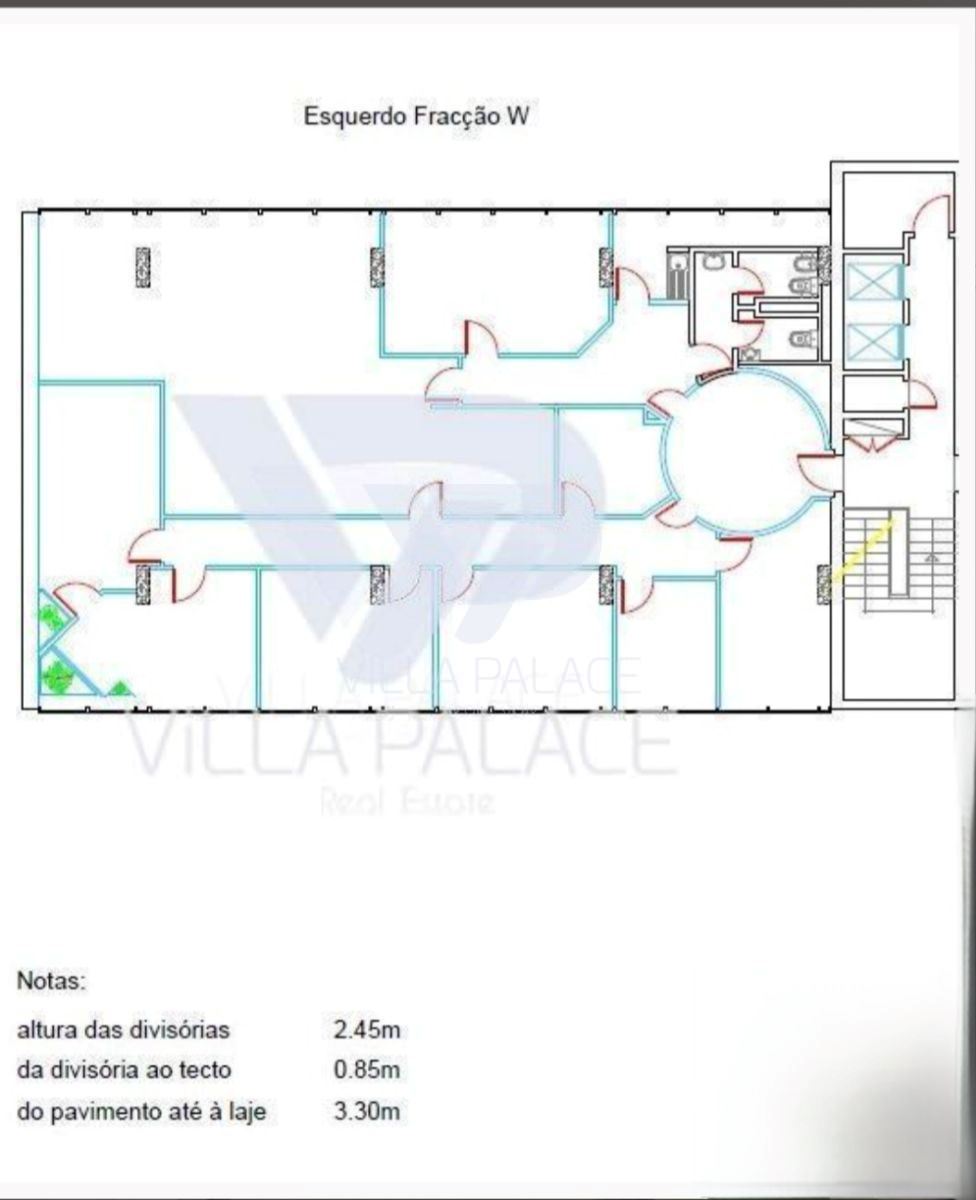 Escritório com excelente área e localização central Apresentamos um amplo escritório com 771 m², situado numa zona central e consolidada da cidade, onde predominam edifícios de habitação, serviços e comércio o cenário ideal para empresas que valorizam visibilidade, acessibilidade e prestígio. Características do imóvel 10 gabinetes independentes, ideais para equipas de trabalho ou consultórios; 8 instalações sanitárias, distribuídas de forma funcional; Copa equipada, perfeita para apoio aos colaboradores; 1 divisão de arrumos, com acesso direto por uma das saídas de emergência; 2 amplos espaços abertos, versáteis para zona de trabalho colaborativo, reuniões ou showroom; Corredor central com receção junto à entrada, garantindo uma circulação fluida e acolhedora; 1 arrecadação com 12 m² (nº 38); 4 lugares de estacionamento (2 duplos em linha), localizados na cave, no 1º piso. Zona envolvente Localizado numa área privilegiada da cidade, bem servida por transportes públicos, comércio local e serviços essenciais, proporcionando excelentes condições para empresas que procuram uma morada central e funcional. Informações adicionais Área total: 771 m² Arrecadação: 12 m² Condomínio: 1.408,73 € / Trimestral Estacionamento: 4 lugares (2 duplos em linha) ________________________________________ Este escritório combina amplitude, funcionalidade e localização estratégica, tornando-se uma excelente oportunidade de investimento ou o espaço ideal para a sua empresa crescer. ________________________________________ Visite-nos em setimoambiente.com