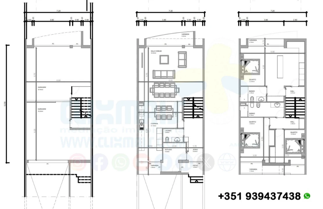 Ver sugestão de planta, onde temos 1 Suite e pode vir a ter 3 suites. E no piso social, junto da entrada possibilidade de um pequeno escritório/ estúdio com 6,3 m2, ou ampliar a cozinha. As fotografias apresentadas, são de um moradia similar que não tem o escritório e tem 3 suites.