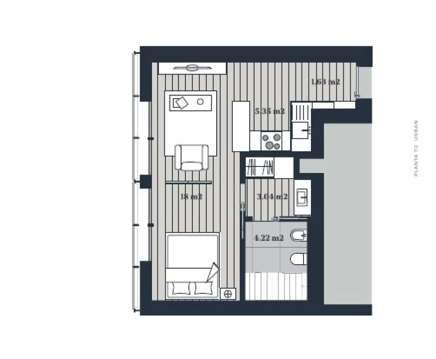 Com 43 m² de área bruta e 40 m² de área útil, dispõe de uma sala luminosa com kitchenette totalmente equipada ideal para momentos de convívio e para o teu dia a dia. A casa de banho moderna oferece todo o conforto e praticidade que procuras.