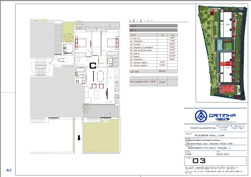 Apresentamos este moderno apartamento T2 em construção, situado no rés-do-chão, com 108.57 m² de área bruta e um terraço privativo com 37.68 m² . A fração inclui ainda lugar de estacionamento na cave e acesso à piscina comum.
