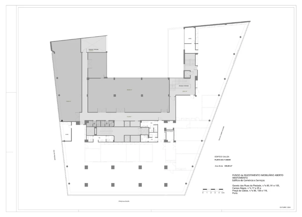 Escritório para arrendamento com 726 m² de área bruta, junto à Praça da Galiza, no Porto.