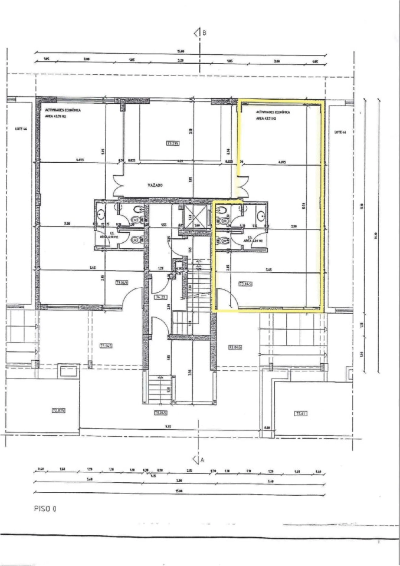 Área bruta de 50 m², com dois WC's e duas frentes, ambas com montras, proporcionando boa luminosidade e visibilidade exterior.