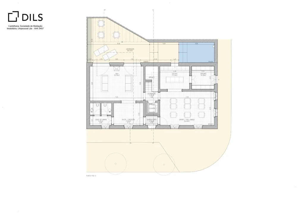 O projeto prevê a distribuição funcional por três pisos: no piso térreo, encontra-se a receção, zona de estar, sala de pequenos almoços, cozinha, instalações sanitárias e um logradouro exterior privativo com piscina, proporcionando um ambiente de lazer e conforto aos futuros utilizadores. Nos pisos superiores, estão projetadas 10 suítes, com áreas compreendidas entre 14m² e 19m², todas com orientação solar favorável, promovendo uma boa luminosidade natural, e desenhadas para garantir privacidade e comodidade.