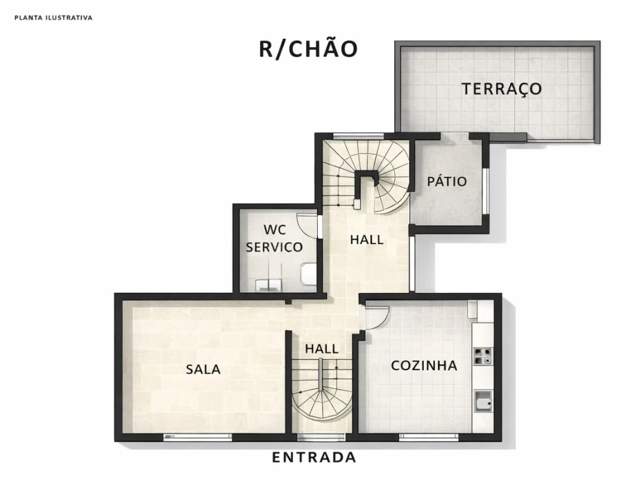 A moradia distribui-se por dois pisos. No piso 0 encontra-se o hall de entrada, a sala de estar independente, a cozinha separada, um WC de serviço e o acesso direto a um agradável terraço nas traseiras, perfeito para momentos de lazer, refeições ao ar livre ou criação de uma zona verde privada. No piso 1 localizam-se dois quartos e um WC completo, oferecendo uma zona de descanso confortável e bem organizada.