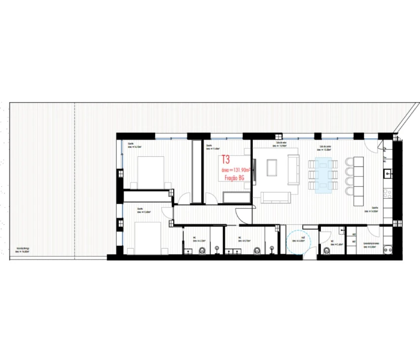 Três quartos, incluindo suíte