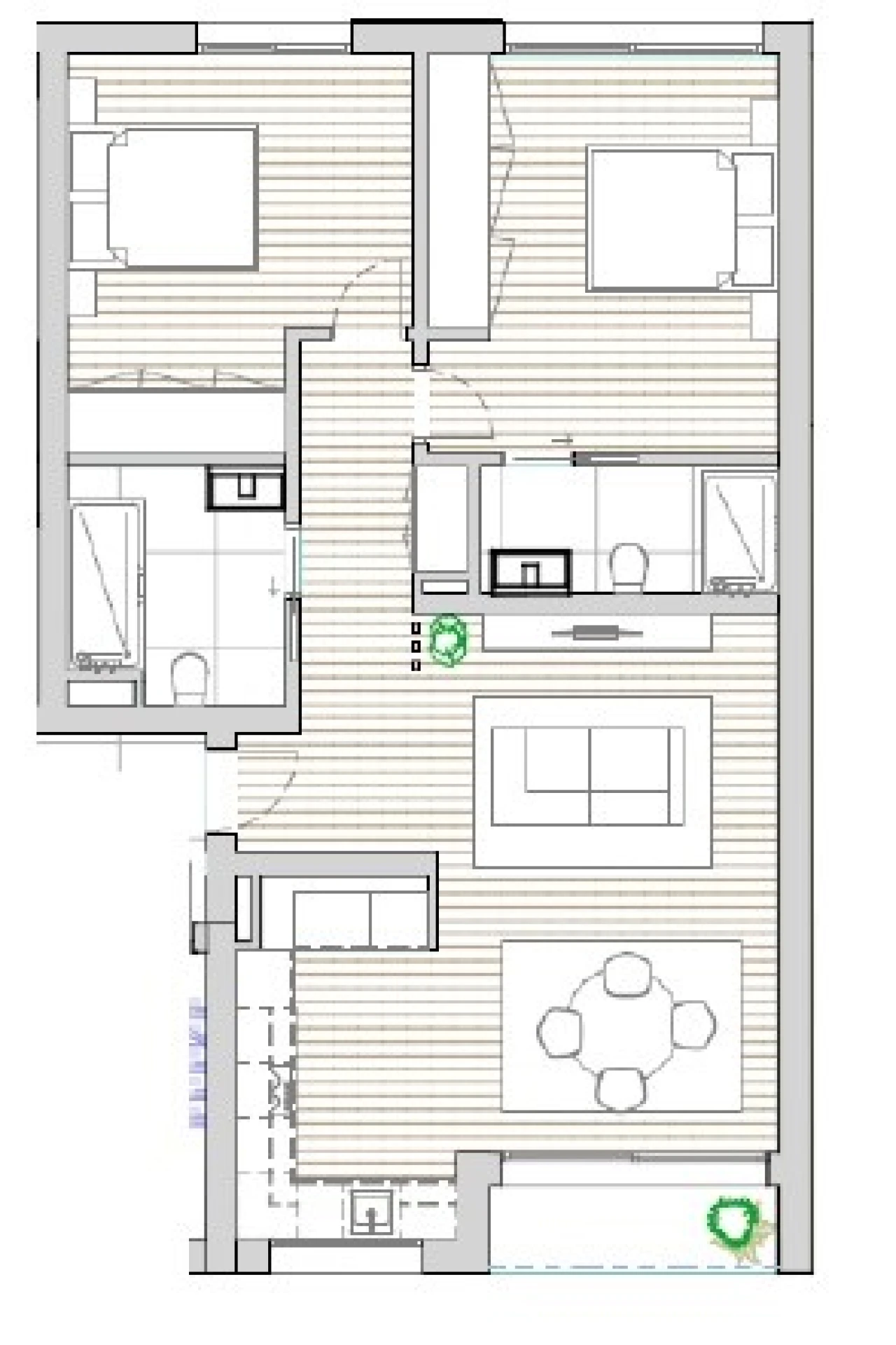 - Pavimento das restantes áreas é em vinil (roble arica);