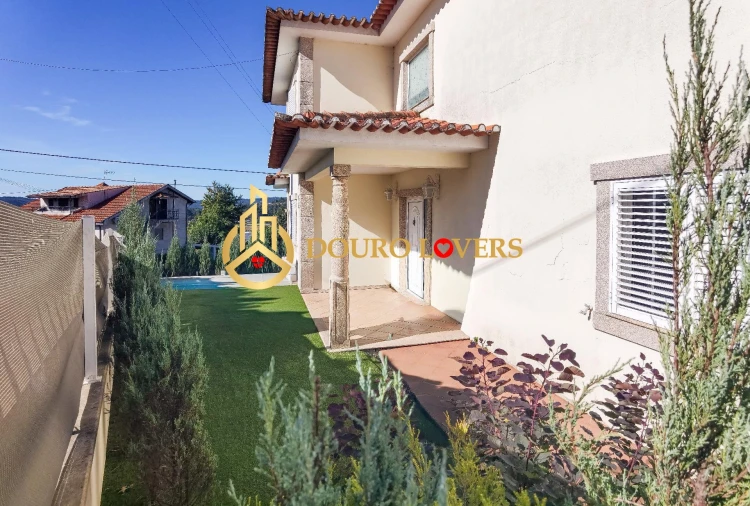 DL25-111. Apresentamos esta Moradia independente T4, localizada numa zona calma e residencial de Ferreira, Paços de Ferreira, ideal para famílias que valorizam espaço, conforto e qualidade de vida.. . Com uma área bruta de 573 m2 e 333 m2 de área útil, esta moradia distribui-se por 3 pisos e oferece amplas divisões interiores e zonas exteriores perfeitas para momentos de lazer. . Características Principais:. . - 4 quartos espaçosos, todos com armários embutidos. . - 4 casas de banho modernas e funcionais. . - Sala de estar luminosa com excelente exposição solar. . - Cozinha principal equipada, com acesso ao exterior. . - Segunda cozinha, com fogão a lenha, ideal para refeições tradicionais e momentos de conforto. . - Amplo salão de convívio, perfeito para eventos familiares, festas ou zona de lazer. . - Terraço e varanda, ótimos para relaxar ou aproveitar o pôr do sol. . - Arrecadação. . Zonas Exteriores:. . - Piscina privativa com total privacidade. . - Jardim envolvente, com espaço para convívio, zona de lazer. . Conforto e Equipamentos:. . - Sistema de ar condicionado. . - Moradia de segunda mão, em bom estado de conservação. . É uma excelente oportunidade para quem procura uma casa espaçosa, moderna e bem equipada, inserida numa zona tranquila e próxima de todos os serviços essenciais, escolas, comércio e acessos rodoviários.. . Não perca esta oportunidade! Agende já a sua visita e venha conhecer a sua futura casa em Paços de Ferreira.. . E porque é importante que se sinta acompanhado e que estamos consigo, sempre.. . Os consultores Douro Lovers têm uma formação única no mercado, ancorada na partilha de experiência prática entre profissionais e fortalecida pelo conhecimento de Coaching, que lhes permite simplificar e tornar mais eficaz a sua experiência imobiliária.. . O nosso maior valor é entregar resultados!. Com a Douro Lovers nunca se sentirá perdido, ou desacompanhado, e encontrará algo que não tem preço: a sua máxima tranquilidade!. . É assim que se vai sentir ao longo de toda a experiência: Tranquilo, Confortável e... FELIZ!. . Deixe para trás os pesadelos burocráticos porque na Douro Lovers encontra o apoio total de uma equipa experiente e multidisciplinar que lhe dá suporte prático em todos os aspetos fundamentais, para que a sua experiência imobiliária supere as expectativas.. . O nosso maior valor é entregar-lhe felicidade!. . Liberte-se de preocupações e ganhe o tempo de qualidade que necessita para se dedicar ao que lhe faz mais feliz.. . Agimos diariamente para trazer mais valor à sua vida com o aconselhamento fiável de que precisa para juntos conseguirmos atingir os melhores resultados.. .