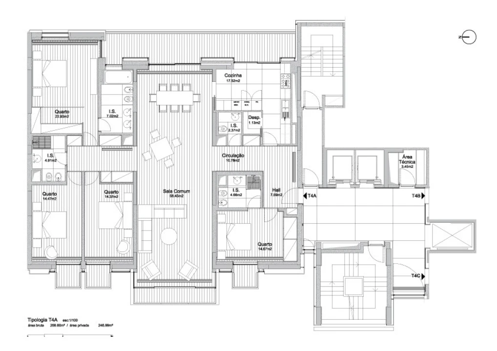 Os proprietários podem usufruir das comodidades do condomínio, e das árias áreas comuns equipadas com bar, sauna romana, ginásio e balneários, cobertura e piscinas, sala de condomínio e espaços de acesso.