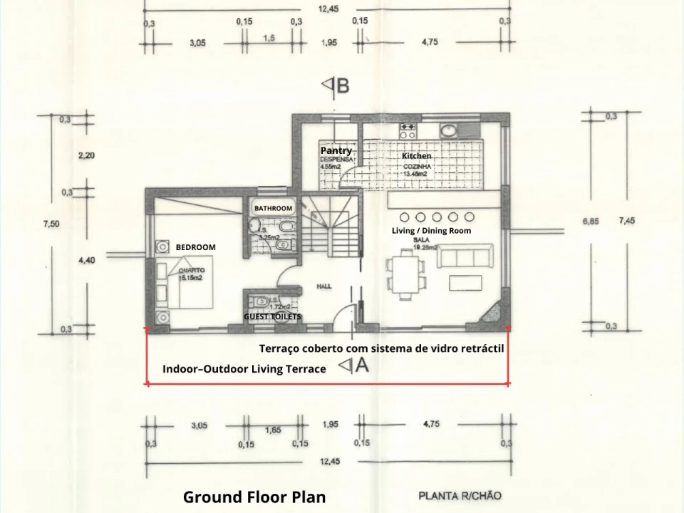Acesso da sala e da suíte a um terraço envidraçado coberto, oferecendo um espaço de vida adicional durante todo o ano