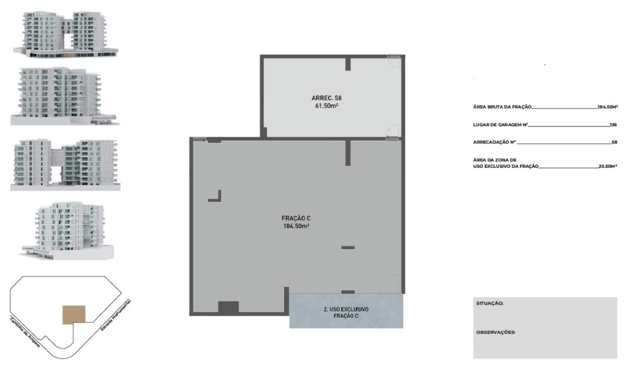 A sua localização privilegiada na frente de rua da Estrada Monumental promove uma ligação harmoniosa entre o comércio local, os espaços verdes e as zonas de lazer envolventes.