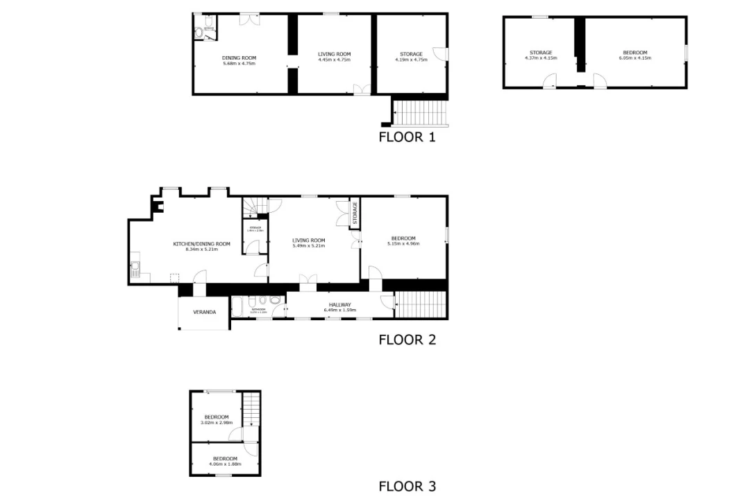 - Rés do chão: 3 compartimentos para arrumos com possibilidade de transformar em habitação;