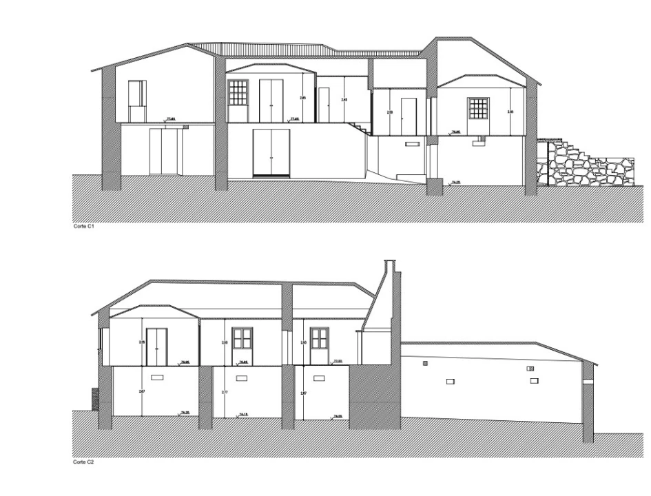O terreno de 665m² alberga uma casa principal que, apesar do estado degradado, revela um enorme potencial para um restauro que preserve o seu caráter rústico. Além disso, dispõe de anexos adicionais e uma eira, elementos que oferecem versatilidade para diferentes usos.
