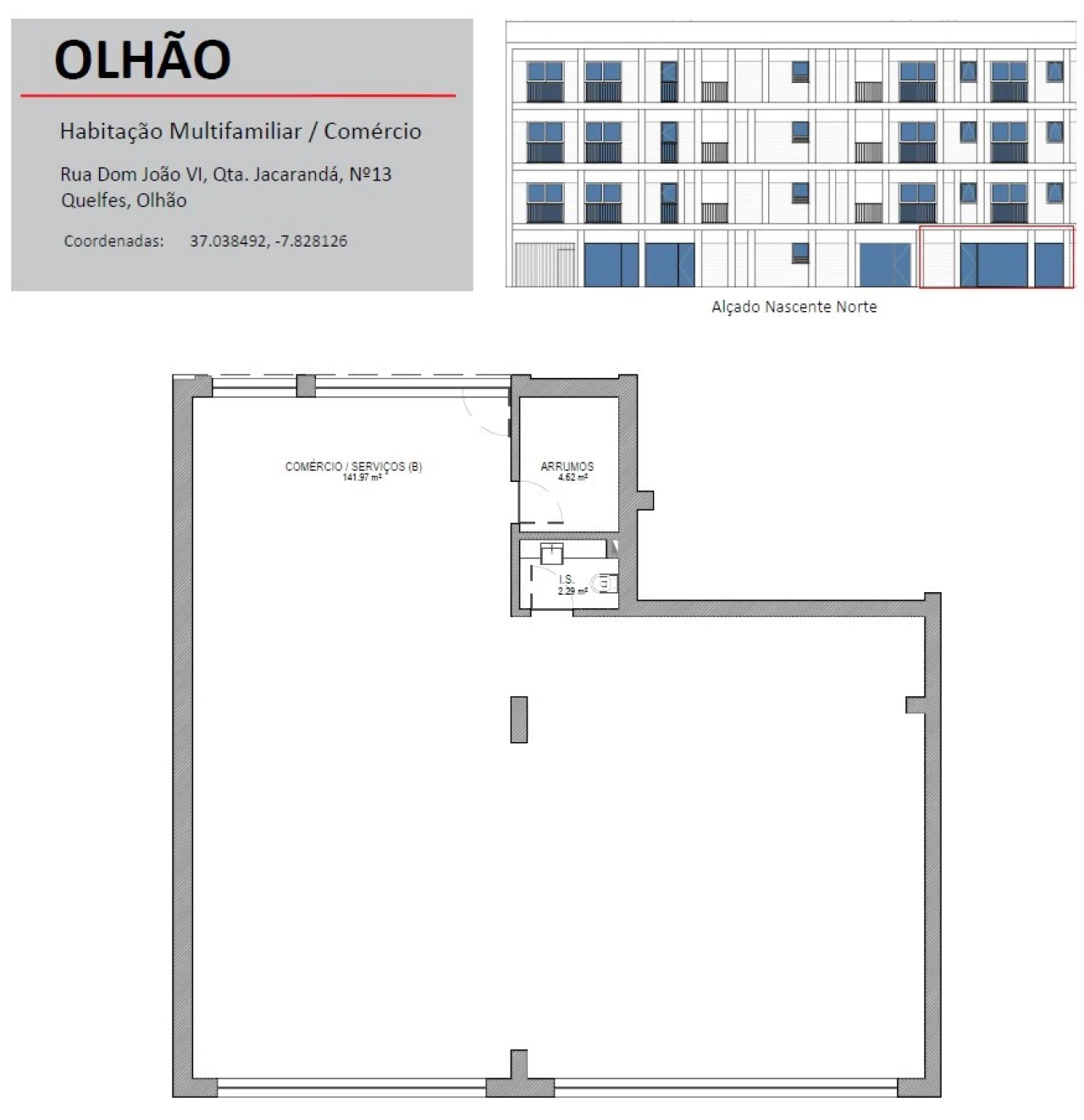 Loja B - com 165m², localizada num edifício em construção, Supreme Buildings, na freguesia de Quelfes, dentro do centro urbano da cidade de Olhão.
