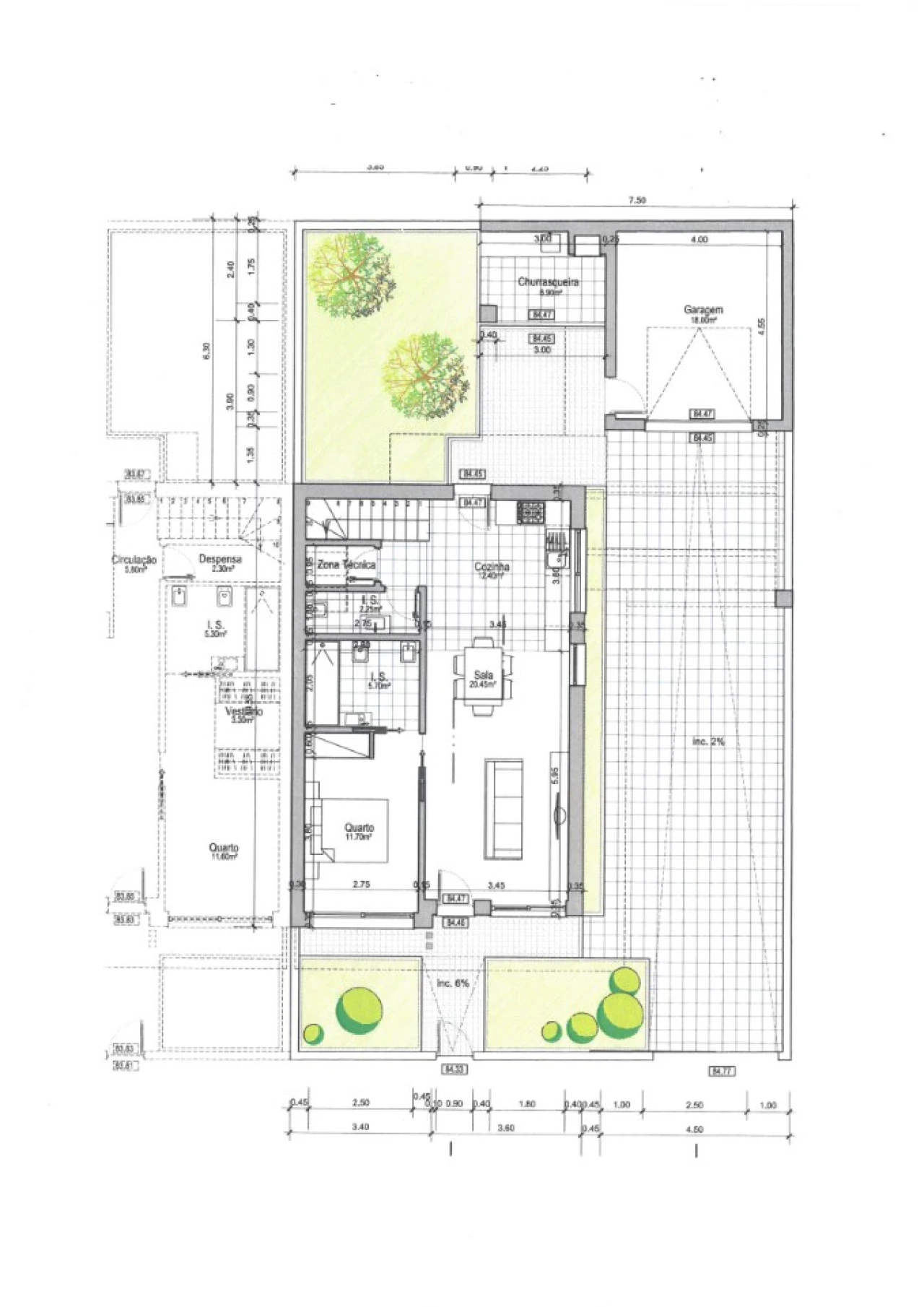 No exterior dispomos de um agradável jardim e terraço, telheiro com churrasqueira de 7m2, estacionamento exterior para 3 viaturas e garagem de 18m2 com capacidade para 1 viatura com portão elétrico.