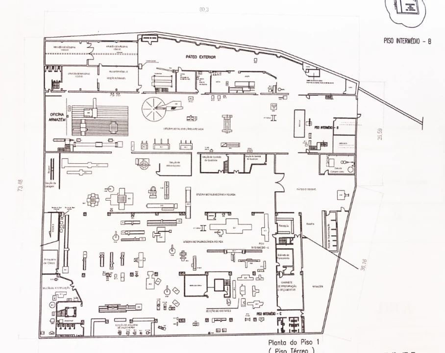 - Prédio com 5 pisos com cerca de 1800m2/piso