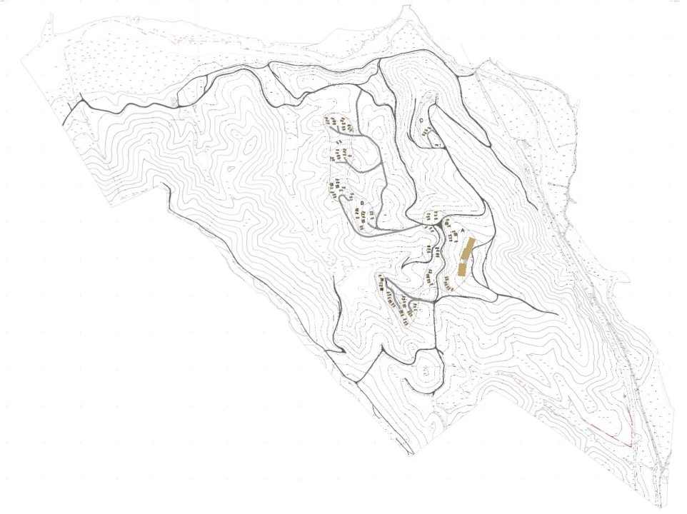 - Conjunto de bungalows de tipologias variadas, dispostos dentro da estrutura nuclear definida e implantados aproveitando as curvas de nível naturais do terreno, conjugadas com a exposição solar e as vistas;