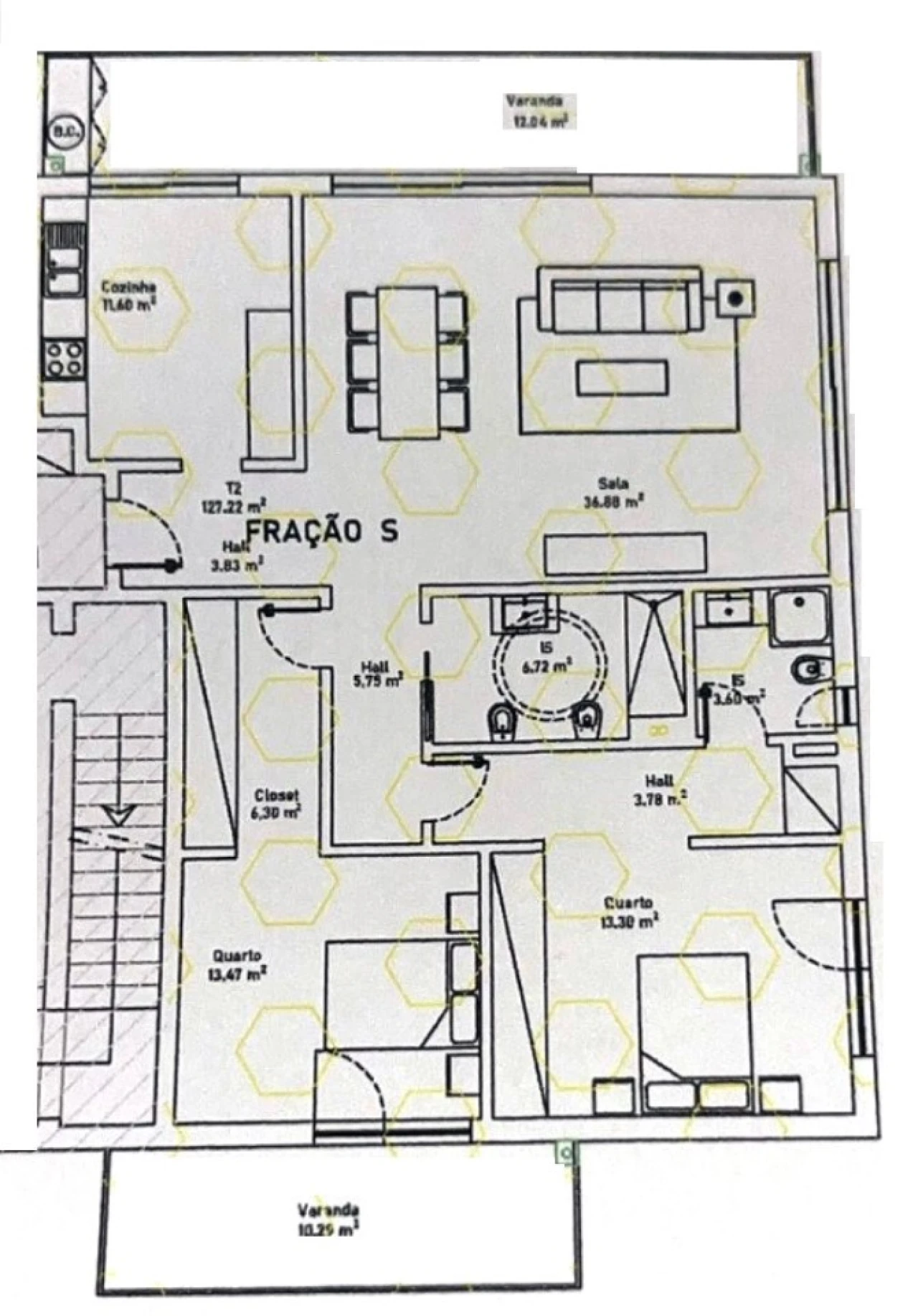 - Hall de Entrada; Cozinha; Sala; 1 Quarto; 1 Suíte; Casa de Banho; 2 Varandas.