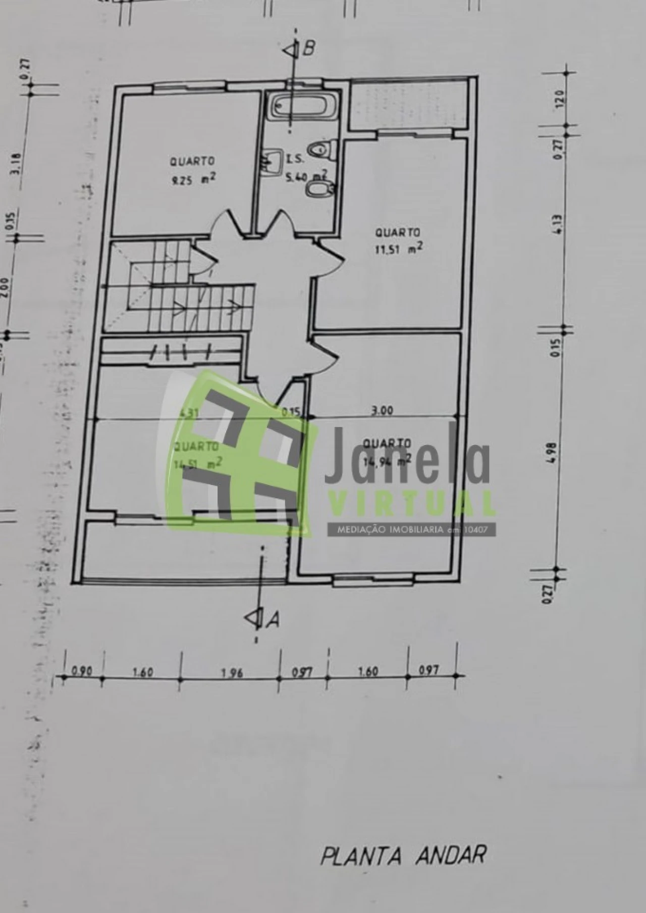 Quarto com roupeiro: 14,94 m²