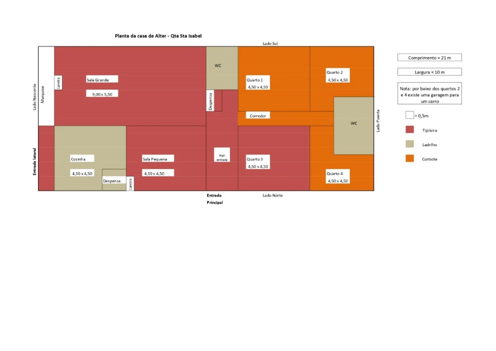A casa principal possui 282 m² e conta com 4 quartos espaçosos, 2 casas de banho, sala de jantar e sala de estar com lareira, proporcionando um ambiente acolhedor e confortável.