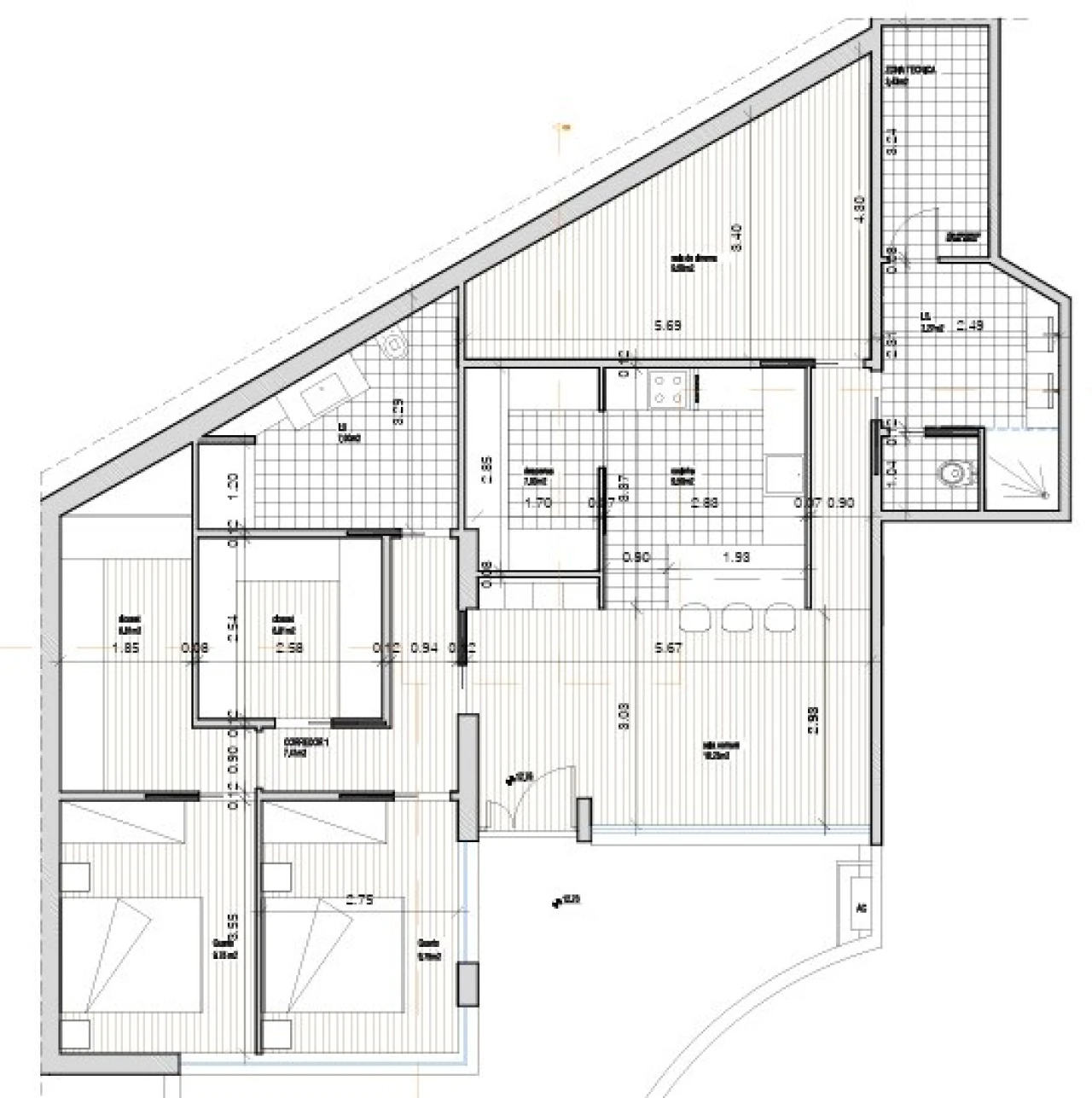 Projecto para apartamento T2 aprovado pela Câmara. Planta anexa.