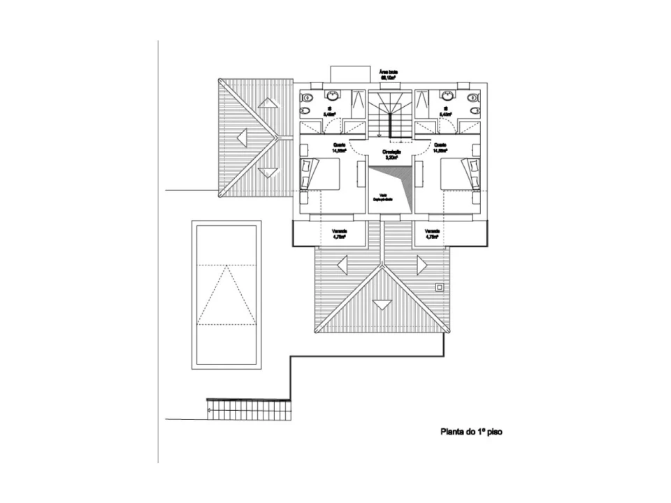 Piso 1: duas suites, de areas generosas, com varanda e vistas desafugadas;