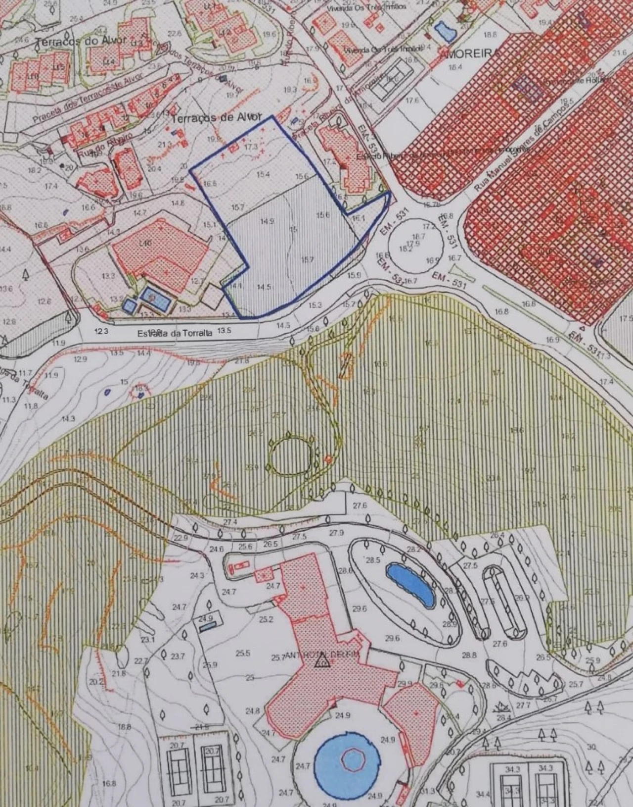 Lote de terreno em Alvor com 5800 m2 com uma parcela urbana de 430 m2. Com potencial para construção de uma moradia de sonhos, restaurante, bar ou café, ou outro tipo de serviços