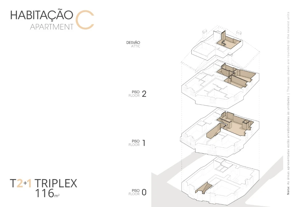 No 2º nível: 2 quartos com roupeiros embutidos e uma casa de banho com chuveiro.