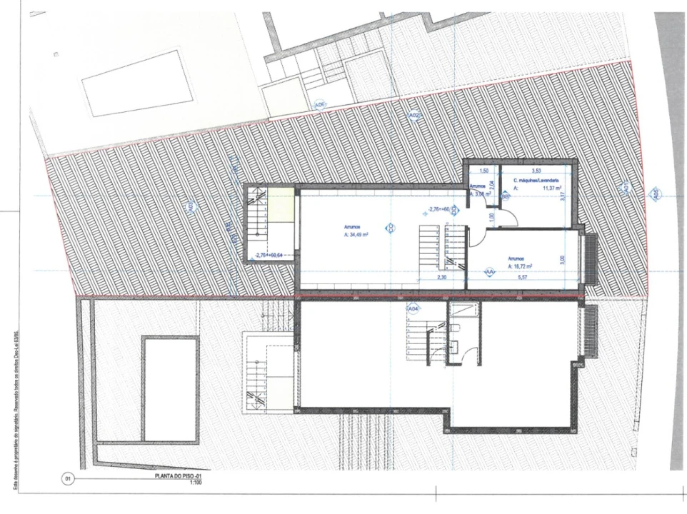 A cave, com 64m2, dispõe de três áreas de arrumos de 34m2, 16m2 e 3m2 e uma lavandaria de 11m2 com máquina de lavar roupa.
