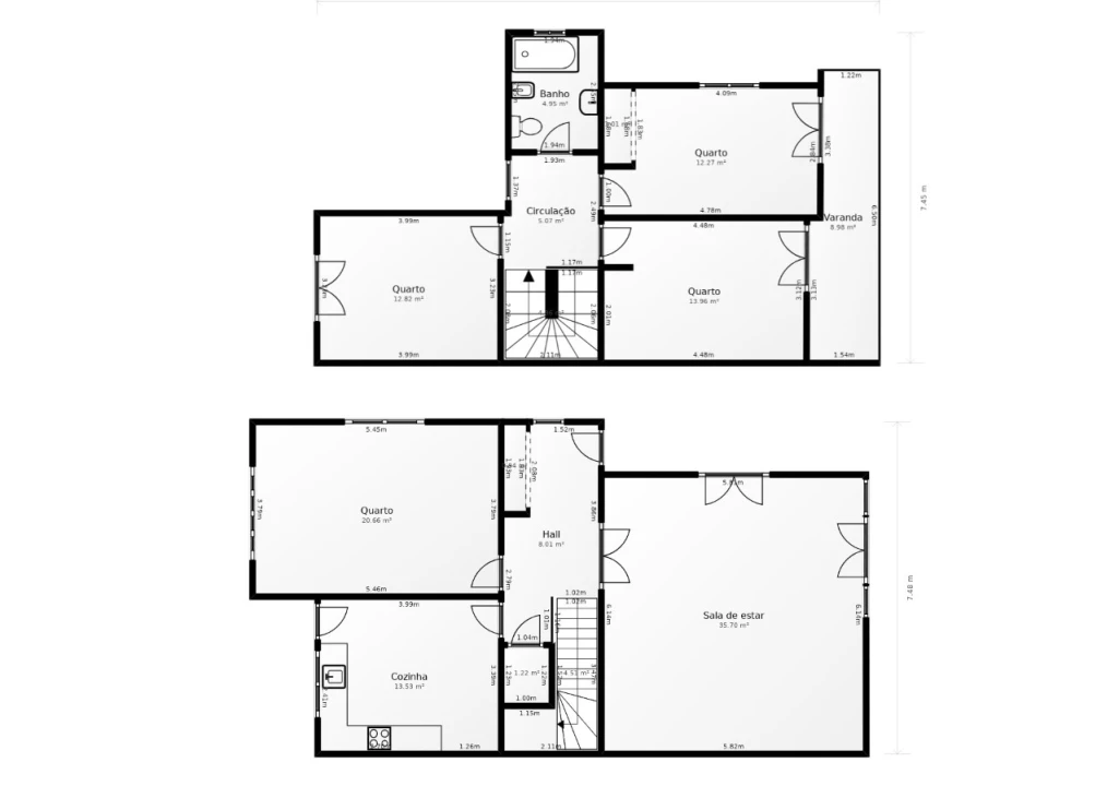Primeiro andar composto por 3 quartos, varanda comum a 2 quartos, com vistas para o mar e 1 WC completo.