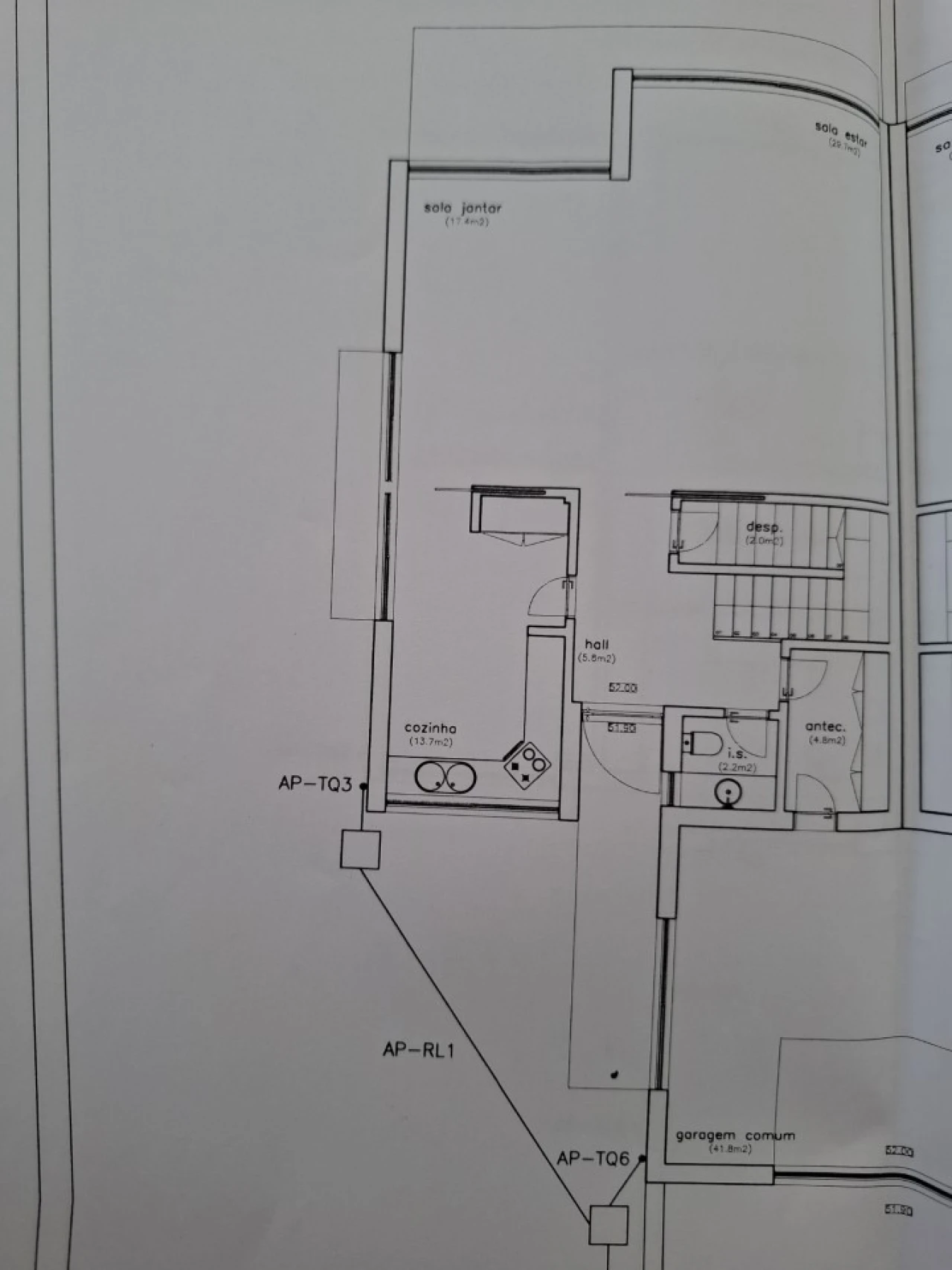 Rés do chão: cozinha totalmente equipada e sala comum com acesso direto ao jardim, casa de banho de serviço, arrumos e garagem.
