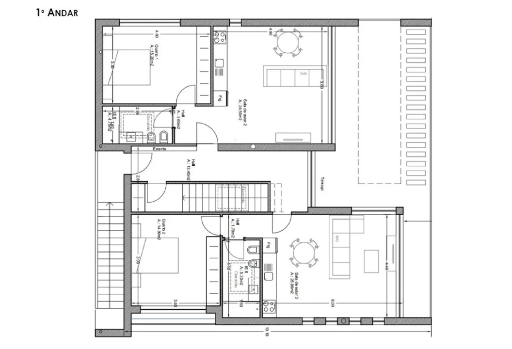 Dois apartamentos T1 totalmente independentes, cada um composto por: