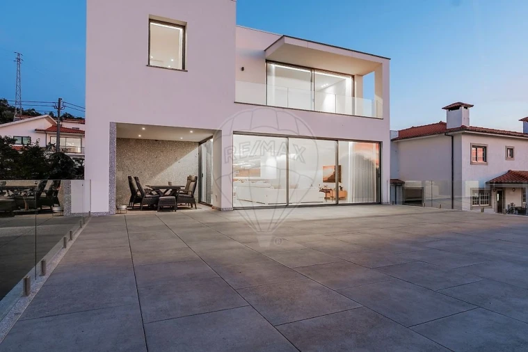 Moradia T4 de Luxo na Encosta da Penha – Guimarães. . Localização Prime | Vista Panorâmica | Construção 2022. . Apresentamos esta exclusiva moradia T4, situada na zona mais nobre de Guimarães, em plena encosta da Penha. Um imóvel de luxo que combina elegância, conforto e tecnologia de ponta, com vista deslumbrante sobre a cidade Berço.. . - Áreas:. . Área Total: 1.189 m2. Área Coberta: 346,5 m2. Área Descoberta: 842,5 m2. . Composição do Imóvel (3 Pisos):. . - Piso Inferior:. . Cozinha de apoio generosa. Lavandaria. Casa de banho completa. Salão de festas com 100 m2. Garagem fechada para 6 viaturas + anexos. . - Primeiro Piso:. . 1 Suite. Cozinha principal totalmente equipada com eletrodomésticos NEFF & BORA. Sala de jantar + sala de estar com lareira. Terraço panorâmico com 100 m2. . - Piso Superior:. . Master suite com closet e varanda. 2 Suites (1 com closet e varanda). Vários armários embutidos em todas as divisões. . - Destaques e Equipamentos:. . Domótica completa: controlo central e remoto de todos os sistemas. Piso radiante em todos os pisos e divisões. Acabamentos premium e construção com materiais de excelência. Sistema de videovigilância. Piscina privada com balneário de apoio. Jardim com sistema inteligente de rega. Churrasqueira exterior. Exposição solar privilegiada e total privacidade. . - Vista Única sobre Guimarães. . Esta propriedade oferece uma experiência de vida inigualável, com uma paisagem que se estende sobre a cidade, perfeita para quem procura conforto, sofisticação e uma localização de prestígio.