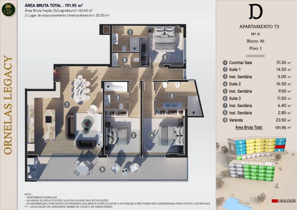 Condomínio fechado composto por 50 apartamentos (T0, T1, T2, T2+1 e T3), com arquitetura contemporânea, excelentes acabamentos, ótima exposição solar e áreas bem distribuídas.